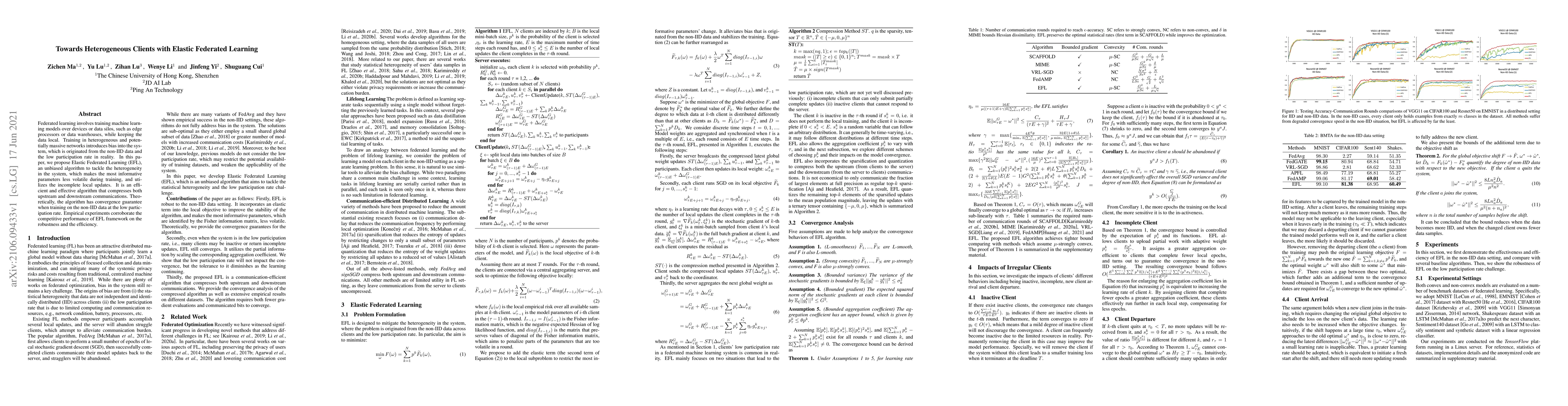 Elastic Federated Learning (EFL) tackles heterogeneity in federated learning systems by making the most informative parameters less volatile during training, utilizing incomplete local updates and compressing communications for efficiency.