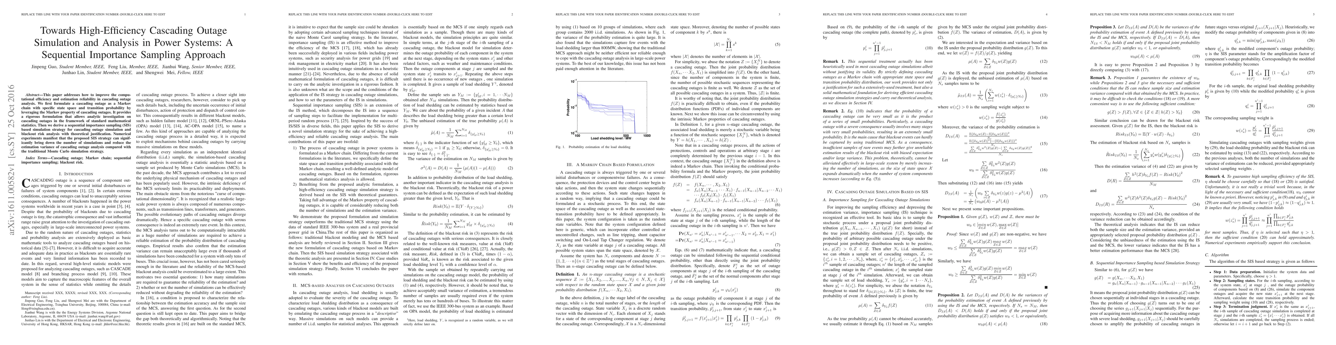 This paper proposes a sequential importance sampling (SIS) approach to enhance computational efficiency and reliability in cascading outage simulations in power systems. The SIS strategy significantly reduces simulation counts and estimation variance compared to traditional Monte Carlo methods.