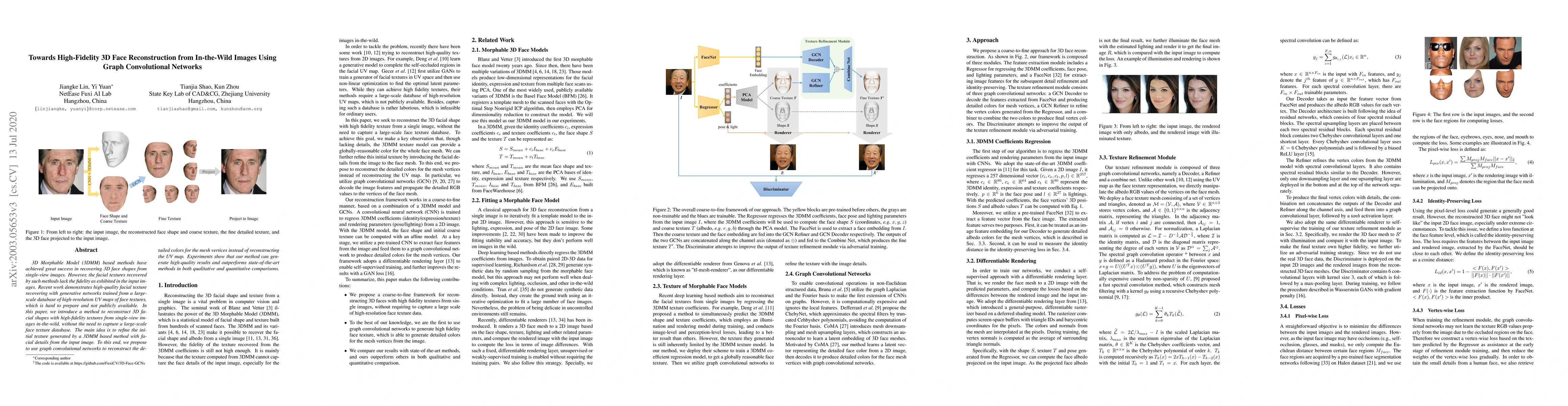 This paper proposes a method to reconstruct high-fidelity 3D facial shapes with detailed textures from single-view in-the-wild images using graph convolutional networks, refining initial textures generated by 3DMM-based methods without requiring a large-scale face texture database. The approach outperforms existing methods in both qualitative and quantitative evaluations.