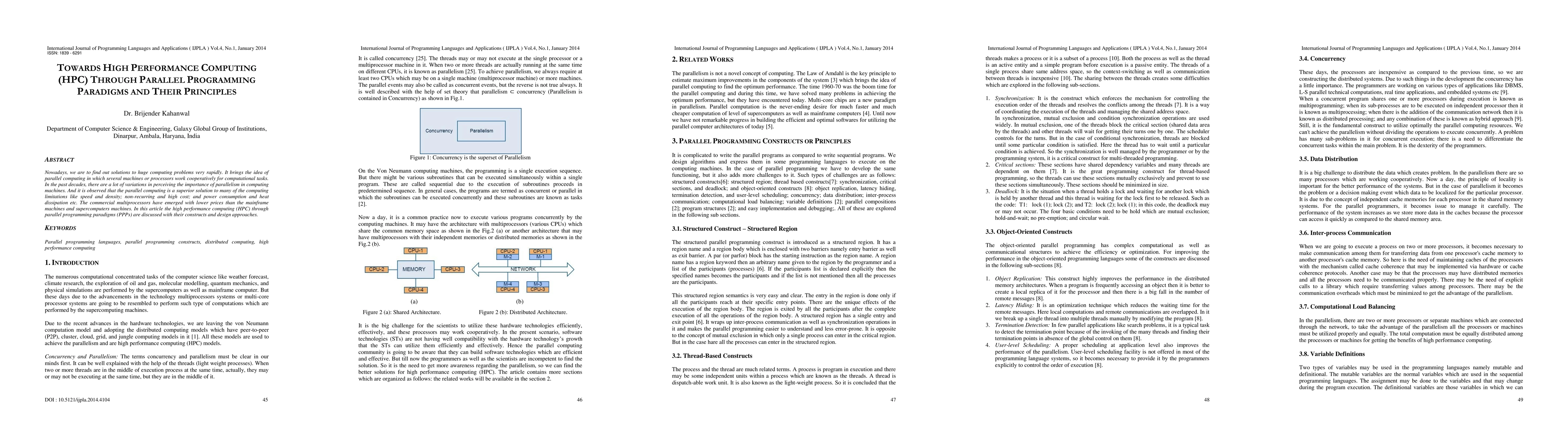 This research paper explores parallel programming paradigms for high-performance computing, discussing their benefits and design approaches in solving large computational tasks. It highlights the importance of parallelism in overcoming computing limitations and its potential to provide superior solutions with lower costs and environmental impact.