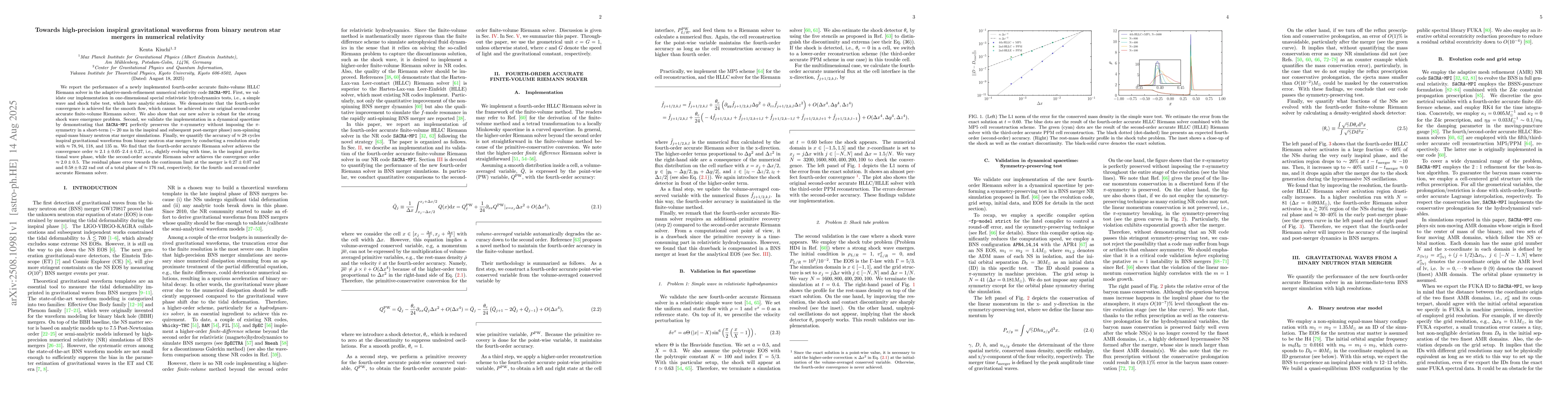 This work extends previous numerical relativity studies by introducing a higher-order accurate Riemann solver, achieving improved convergence and accuracy in inspiral gravitational waveform simulations.
