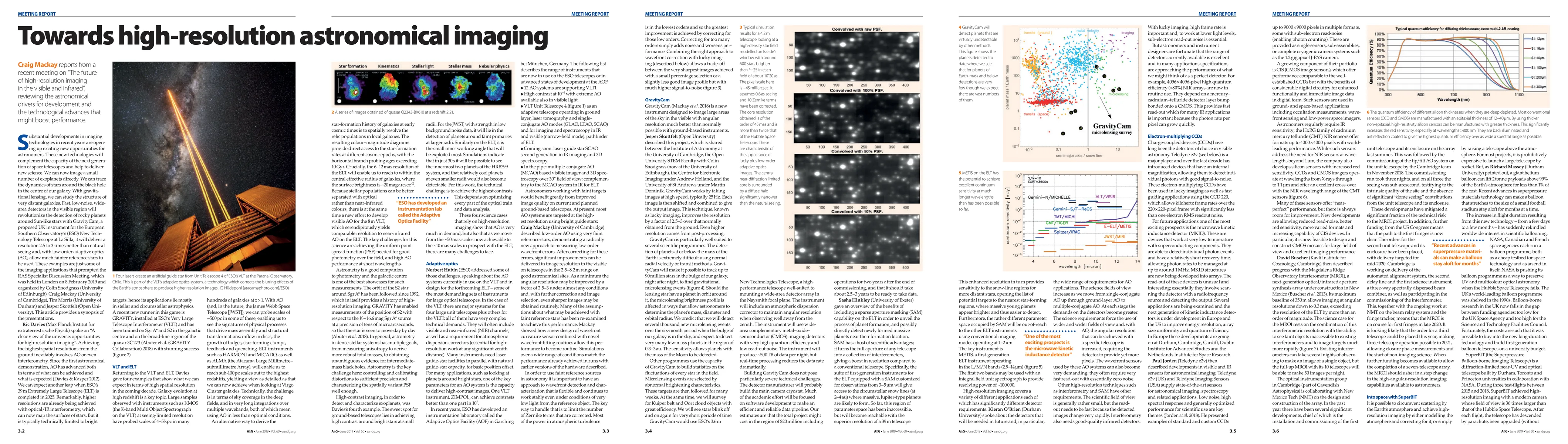 This paper reviews advancements in high-resolution imaging technologies for visible and infrared astronomy, driven by specific astronomical goals, and highlights the contributions of various experts to the discussion. The report synthesizes current technological progress and future potential for enhancing astronomical imaging.