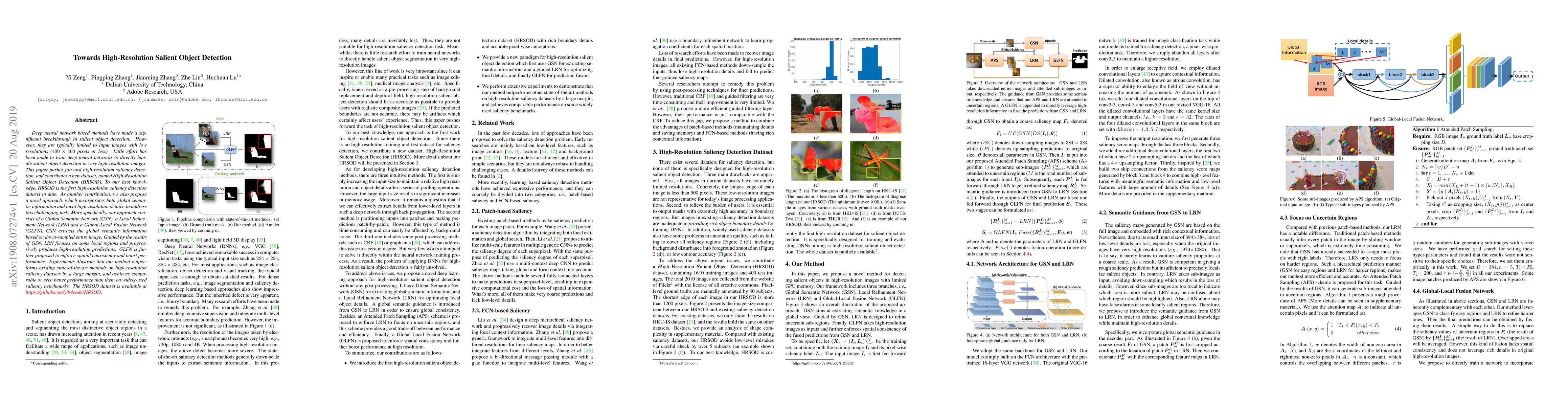 A new method for high-resolution salient object detection is proposed, which combines global semantic information with local high-resolution details, achieving state-of-the-art performance on challenging high-resolution datasets.