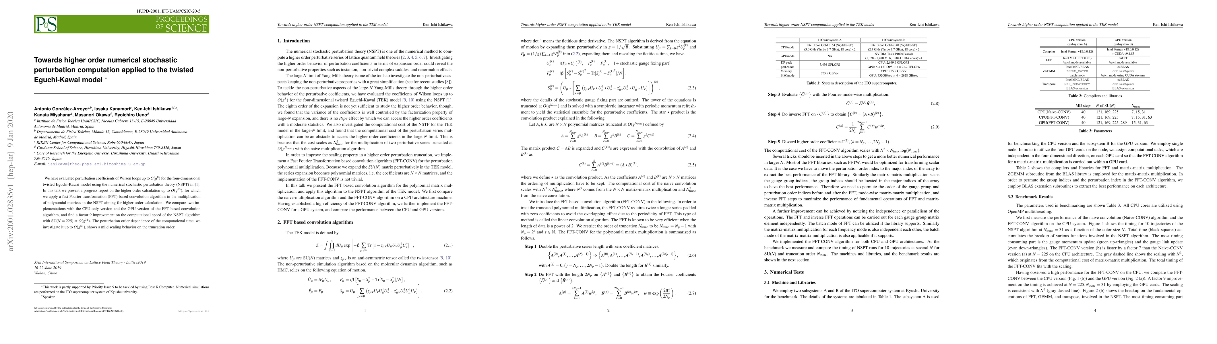 This paper reports on advancements in numerical stochastic perturbation theory (NSPT) for calculating higher order perturbation coefficients in the twisted Eguchi-Kawai model, achieving up to $O(g^{63})$. The authors employ FFT-based convolution algorithms to enhance computational efficiency, demonstrating a nine-fold speedup over CPU-only methods.