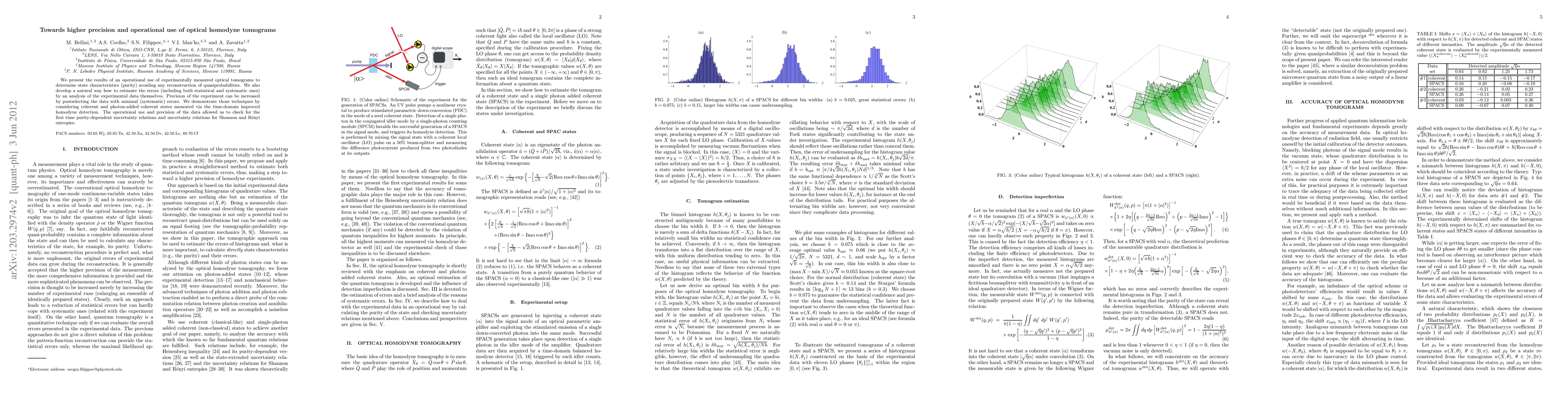 We present the results of an operational use of experimentally measured optical tomograms to determine state characteristics (purity) avoiding any reconstruction of quasiprobabilities. We also develop a natural way how to estimate the errors (including both statistical and systematic ones) by an analysis of the experimental data themselves. Precision of the experiment can be increased by postselecting the data with minimal (systematic) errors. We demonstrate those techniques by considering coherent and photon-added coherent states measured via the time-domain improved homodyne detection. The operational use and precision of the data allowed us to check for the first time purity-dependent uncertainty relations and uncertainty relations for Shannon and R\'{e}nyi entropies.