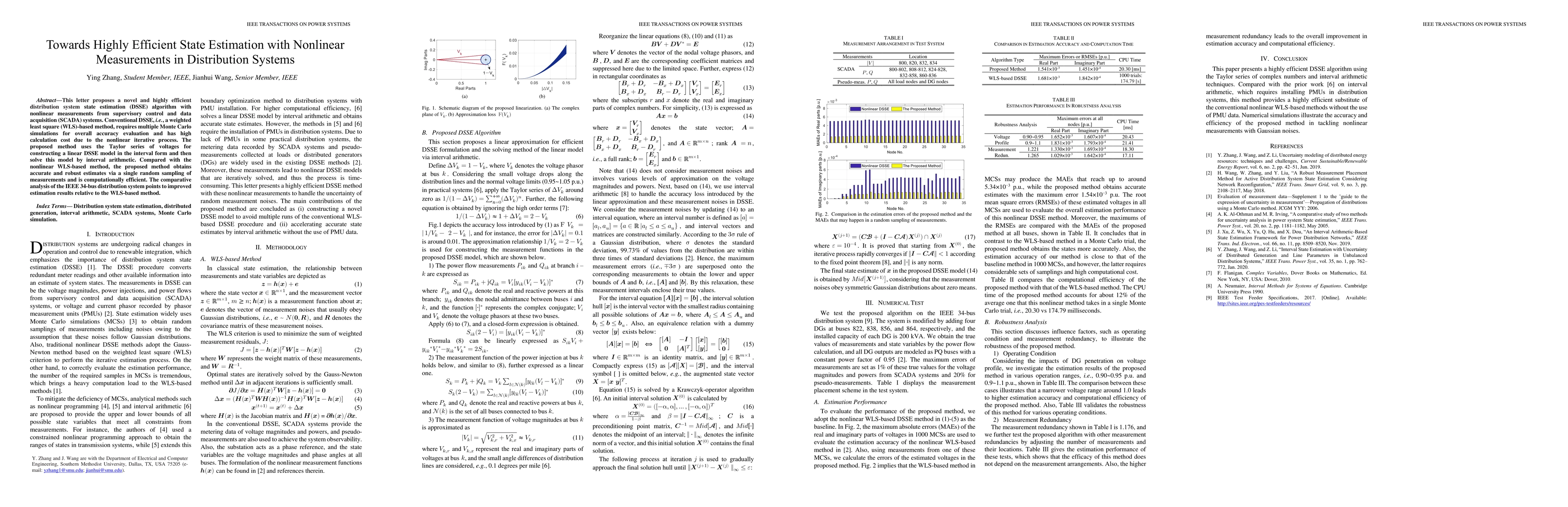 This paper introduces a novel, efficient state estimation algorithm for distribution systems using nonlinear SCADA measurements, employing Taylor series and interval arithmetic for accurate and computationally efficient results compared to traditional weighted least square methods. The proposed method demonstrates improved performance in the IEEE 34-bus distribution system test.