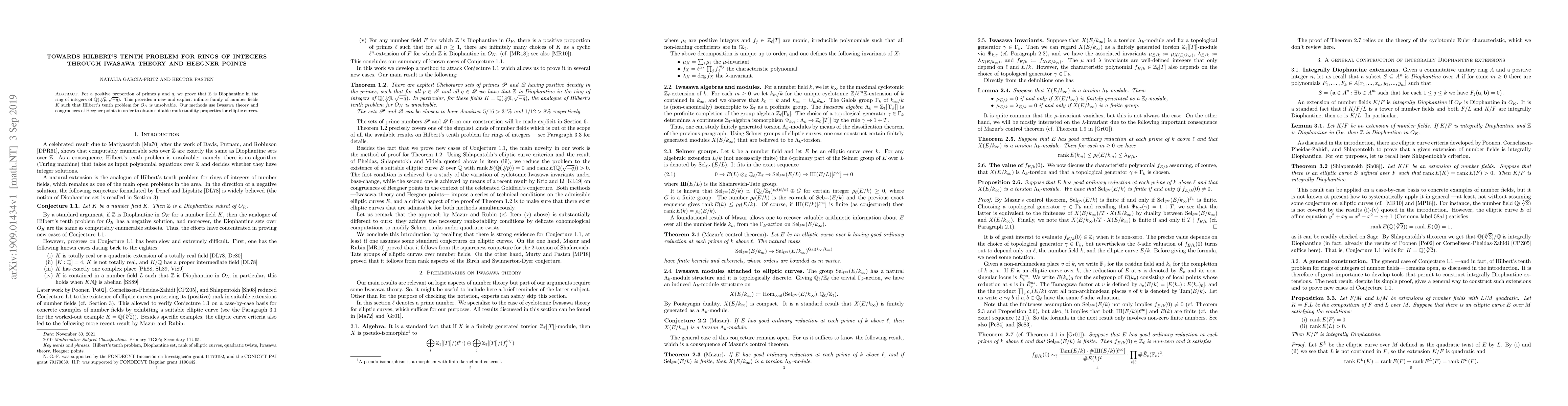 This paper proves that $\mathbb{Z}$ is Diophantine in certain rings of integers, establishing an infinite family of number fields where Hilbert's tenth problem is unsolvable. The authors employ Iwasawa theory and Heegner points to achieve rank stability for elliptic curves.