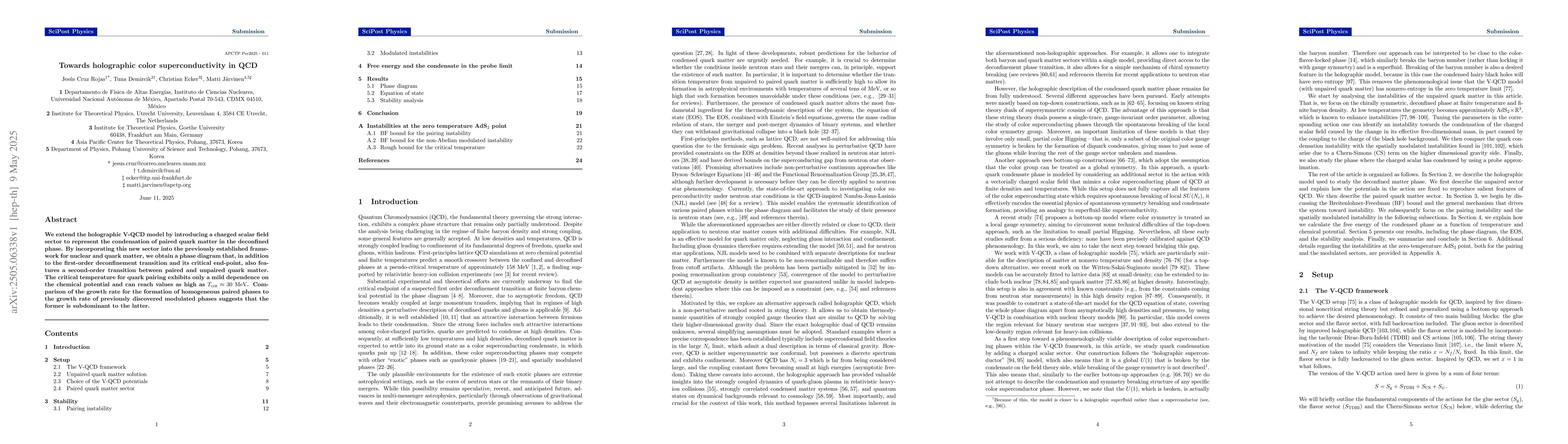 Researchers explored holographic color superconductivity in QCD, discovering a new phase transition between paired and unpaired quark matter with a critical temperature of around 30 MeV.