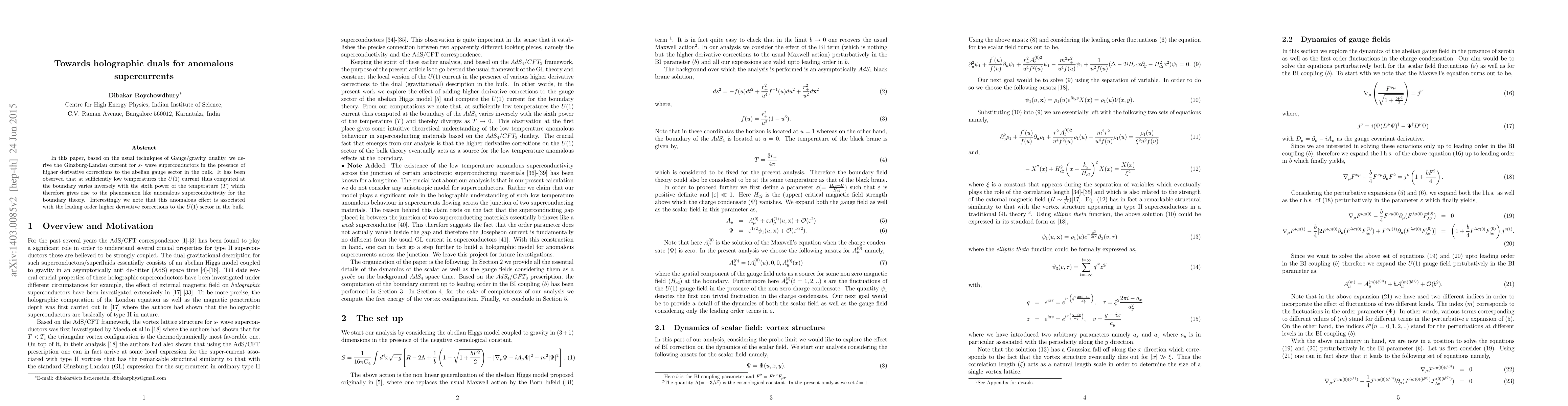 In this paper, based on the usual techniques of Gauge/gravity duality, we derive the Ginzburg-Landau current for $ s $- wave superconductors in the presence of higher derivative corrections to the abelian gauge sector in the bulk. It has been observed that at sufficiently low temperatures the $U(1)$ current thus computed at the boundary varies inversely with the sixth power of the temperature ($ T $) which therefore gives rise to the phenomenon like anomalous superconductivity for the boundary theory. Interestingly we note that this anomalous effect is associated with the leading order higher derivative corrections to the $ U(1) $ sector in the bulk.