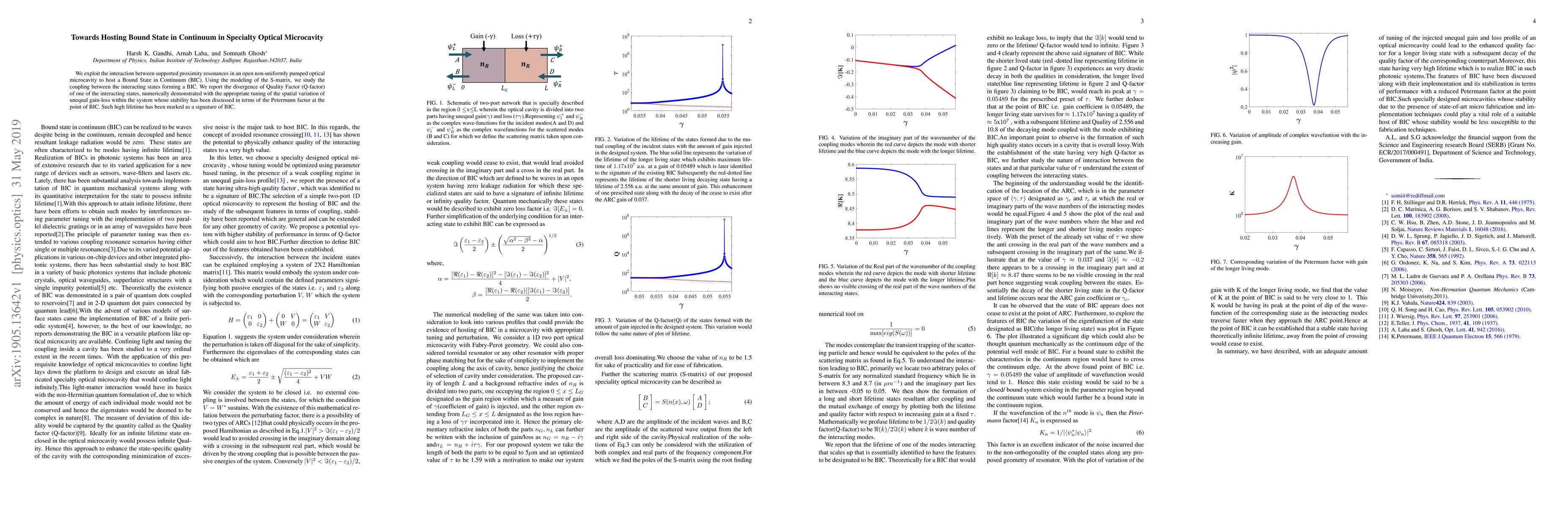 This paper explores the creation of a Bound State in Continuum (BIC) in an open optical microcavity by leveraging interactions between supported proximity resonances. The study uses S-matrix modeling to analyze the coupling of these states, demonstrating a high Quality Factor (Q-factor) divergence through numerical simulations, indicating the stability and signature of BIC achieved through tunable gain-loss variations.