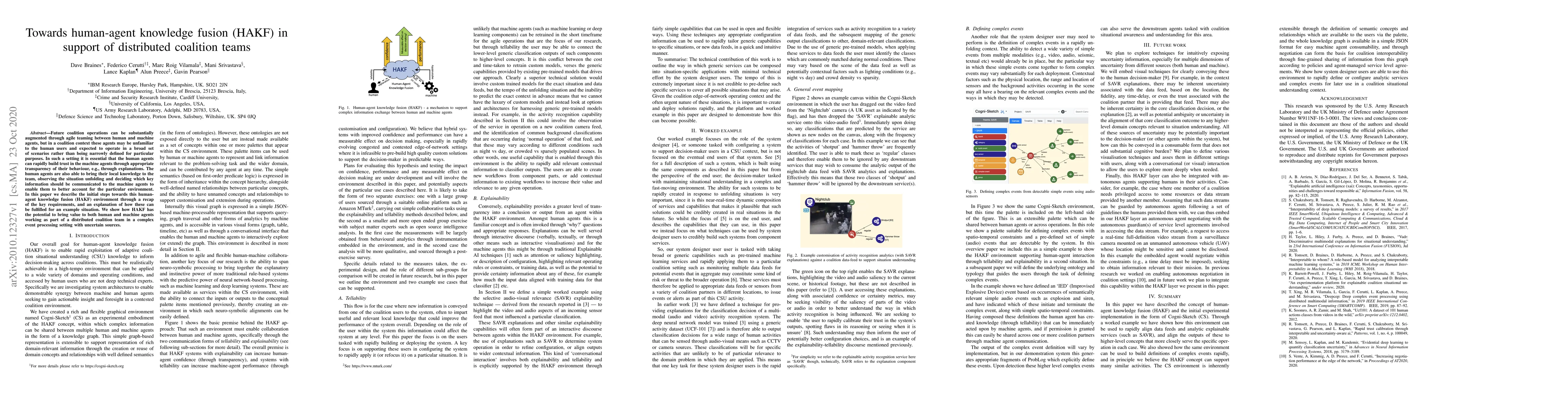 Future coalition operations can be substantially augmented through agile teaming between human and machine agents, but in a coalition context these agents may be unfamiliar to the human users and expected to operate in a broad set of scenarios rather than being narrowly defined for particular purposes. In such a setting it is essential that the human agents can rapidly build trust in the machine agents through appropriate transparency of their behaviour, e.g., through explanations. The human agents are also able to bring their local knowledge to the team, observing the situation unfolding and deciding which key information should be communicated to the machine agents to enable them to better account for the particular environment. In this paper we describe the initial steps towards this human-agent knowledge fusion (HAKF) environment through a recap of the key requirements, and an explanation of how these can be fulfilled for an example situation. We show how HAKF has the potential to bring value to both human and machine agents working as part of a distributed coalition team in a complex event processing setting with uncertain sources.
