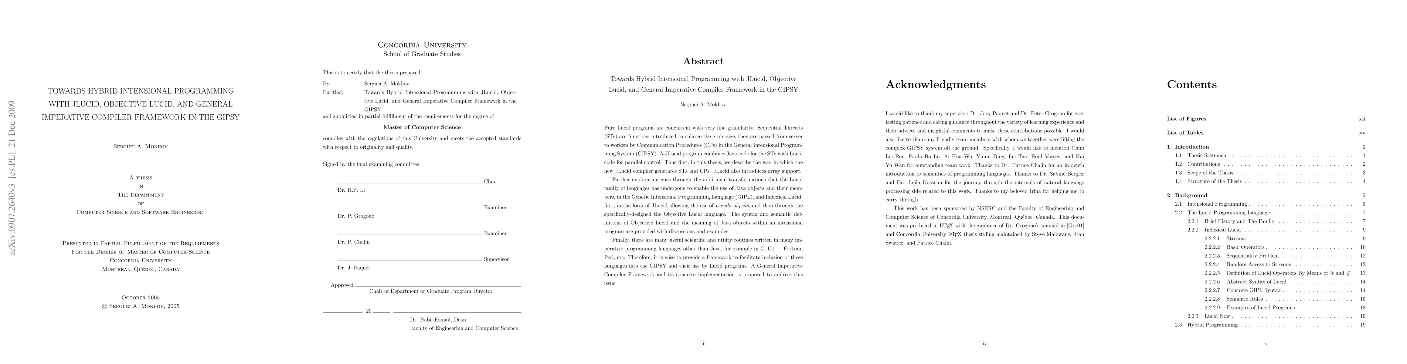 Pure Lucid programs are concurrent with very fine granularity. Sequential Threads (STs) are functions introduced to enlarge the grain size; they are passed from server to workers by Communication Procedures (CPs) in the General Intensional Programming System (GIPSY). A JLucid program combines Java code for the STs with Lucid code for parallel control. Thus first, in this thesis, we describe the way in which the new JLucid compiler generates STs and CPs. JLucid also introduces array support. Further exploration goes through the additional transformations that the Lucid family of languages has undergone to enable the use of Java objects and their members, in the Generic Intensional Programming Language (GIPL), and Indexical Lucid: first, in the form of JLucid allowing the use of pseudo-objects, and then through the specifically-designed the Objective Lucid language. The syntax and semantic definitions of Objective Lucid and the meaning of Java objects within an intensional program are provided with discussions and examples. Finally, there are many useful scientific and utility routines written in many imperative programming languages other than Java, for example in C, C++, Fortran, Perl, etc. Therefore, it is wise to provide a framework to facilitate inclusion of these languages into the GIPSY and their use by Lucid programs. A General Imperative Compiler Framework and its concrete implementation is proposed to address this issue.