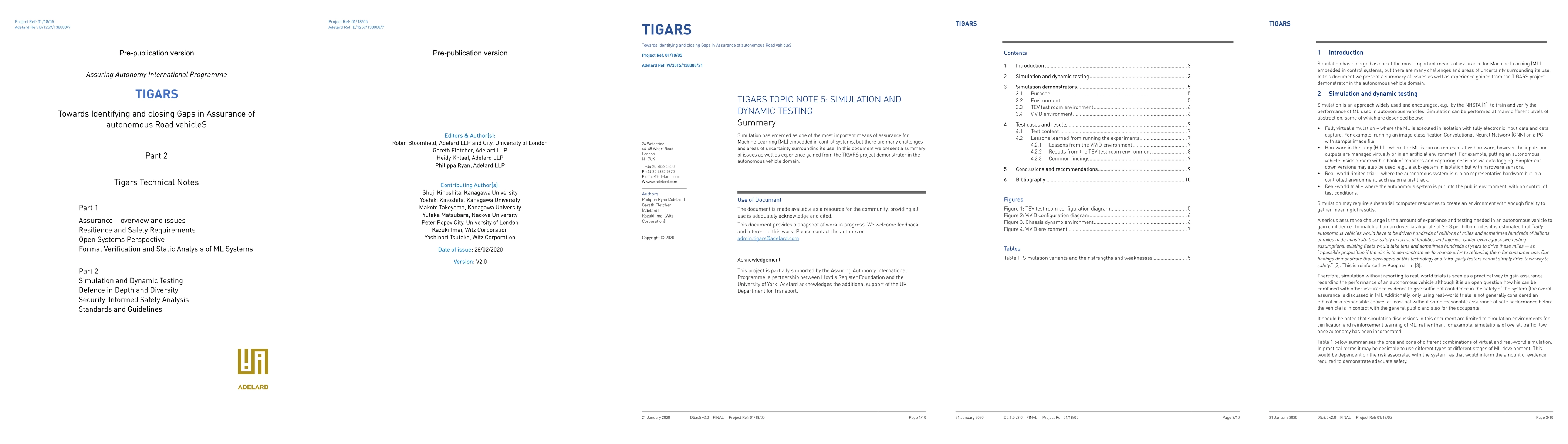 This report is Part 2 of the Tigars project, providing Technical Topic Notes on Simulation and Dynamic Testing, Defence in Depth and Diversity, Security-Informed Safety Analysis, and Standards and Guidelines to support the development and evaluation of autonomous vehicles. It builds on Part 1 which covered Assurance-overview, Resilience and Safety Requirements, Open Systems Perspective, and Formal Verification.