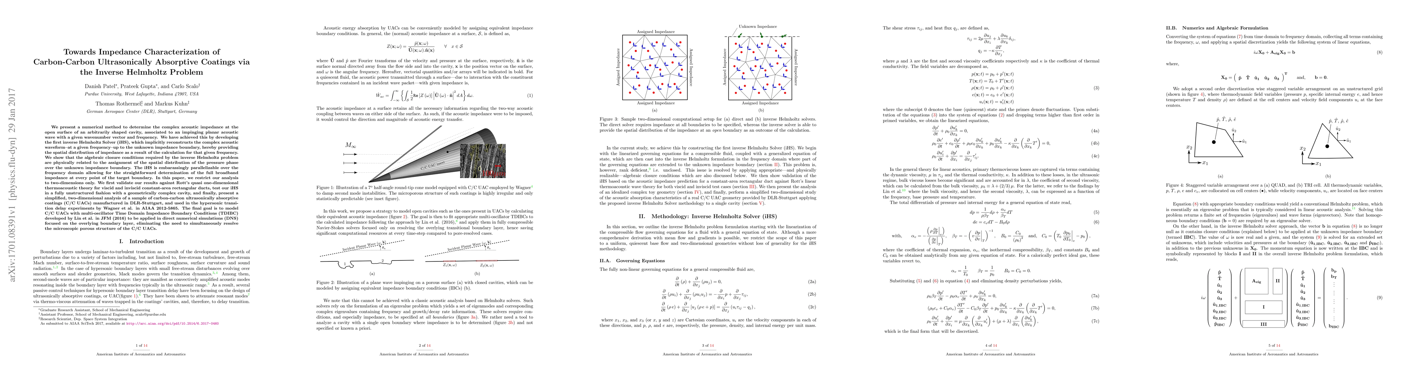 This paper introduces an inverse Helmholtz Solver (iHS) for numerically determining the complex acoustic impedance of arbitrarily shaped cavities exposed to planar acoustic waves. The method validates against established thermoacoustic theory and applies to complex geometries, ultimately aiming to model carbon-carbon ultrasonically absorptive coatings for hypersonic simulations without resolving their microscopic structure.