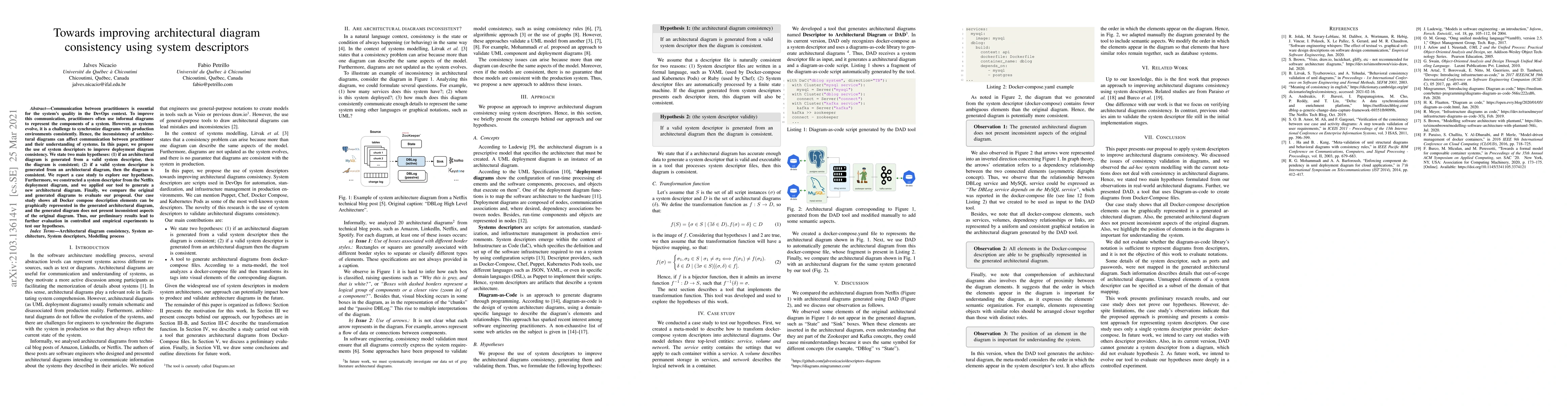 This paper proposes using system descriptors to enhance the consistency of architectural diagrams in DevOps, aiming to improve communication among practitioners. The study hypothesizes that diagrams generated from valid system descriptors are consistent and vice versa, and a case study on Netflix's deployment diagram supports these claims, suggesting further empirical testing is needed.