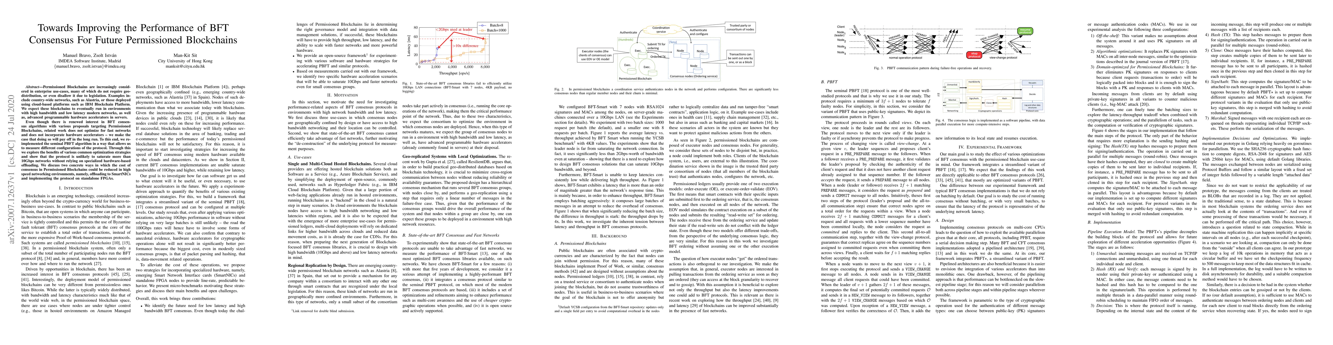This paper investigates optimizing BFT consensus algorithms for permissioned blockchains in high-speed, low-latency networks, proposing that hardware accelerators like SmartNICs and FPGAs can significantly enhance performance. The study re-implements the PBFT algorithm and demonstrates that without such optimizations, the protocol may not efficiently handle networks exceeding 10Gbps.