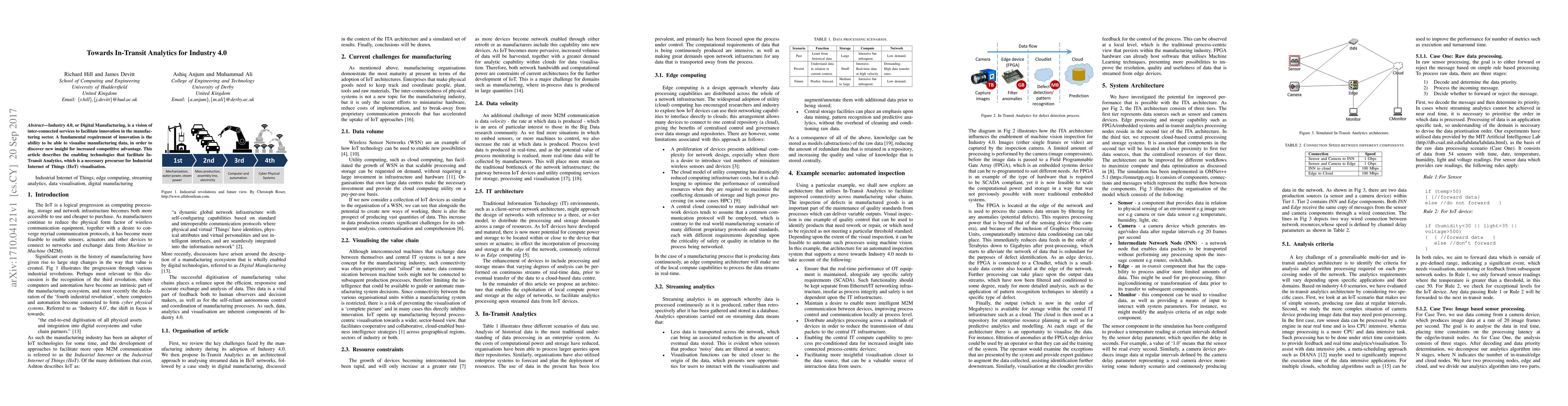 Industry 4.0, or Digital Manufacturing, is a vision of inter-connected services to facilitate innovation in the manufacturing sector. A fundamental requirement of innovation is the ability to be able to visualise manufacturing data, in order to discover new insight for increased competitive advantage. This article describes the enabling technologies that facilitate In-Transit Analytics, which is a necessary precursor for Industrial Internet of Things (IIoT) visualisation.