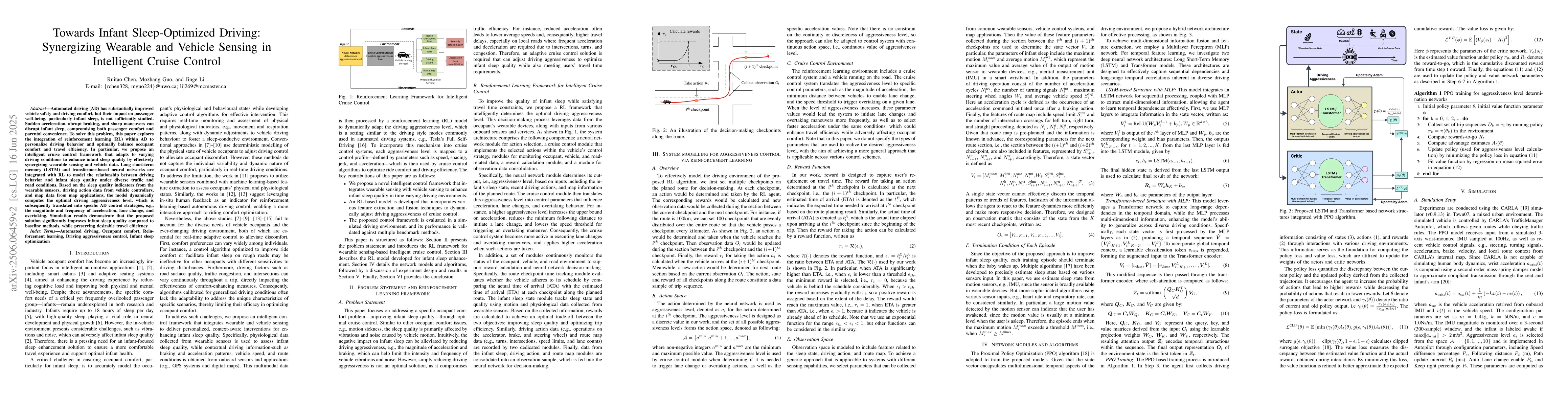 This research proposes an intelligent cruise control system for automated driving that optimizes for infant sleep quality using reinforcement learning. By integrating wearable sensor data and vehicle information, the system dynamically adjusts driving aggressiveness, improving sleep while maintaining travel efficiency, as demonstrated in simulations.