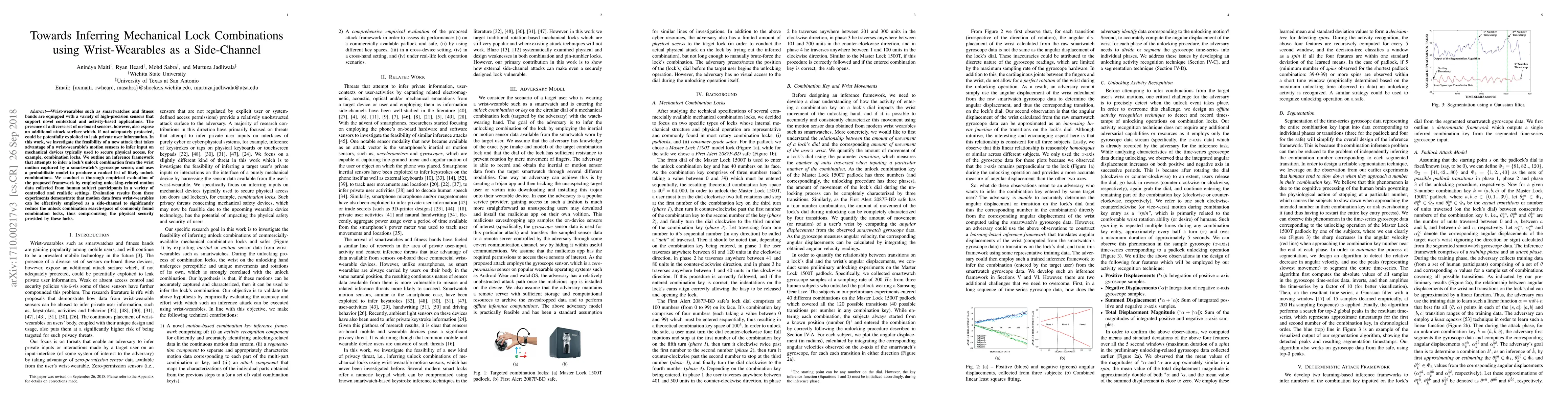 This paper explores a novel side-channel attack using wrist-wearables to infer mechanical lock combinations from wrist motion data captured by gyroscope sensors. The study proposes a probabilistic model to rank likely combinations and demonstrates through empirical evaluation that such attacks can significantly reduce the security of combination locks.