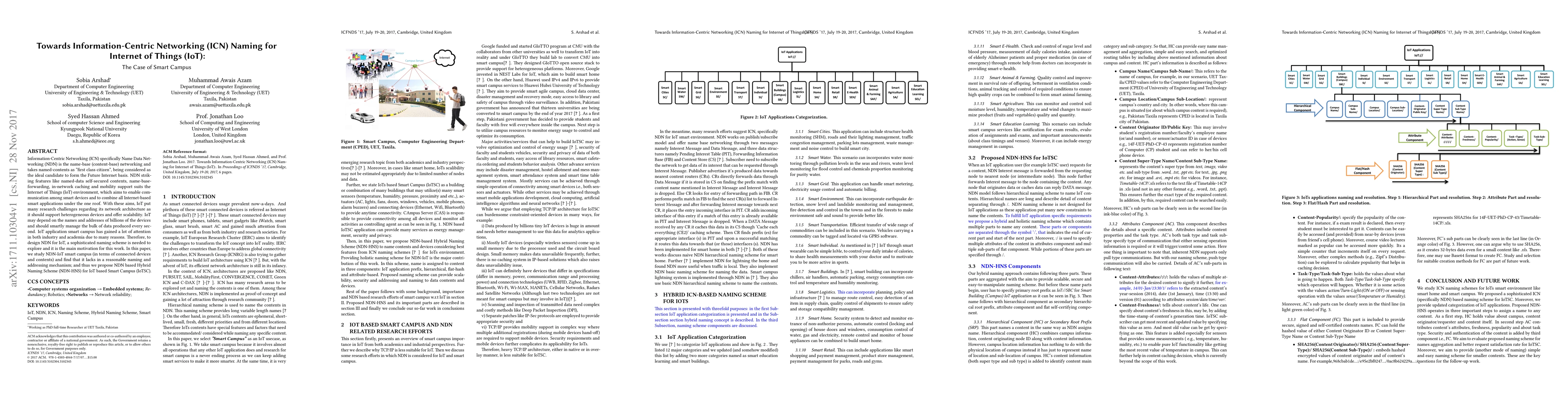 This paper explores the application of Information-Centric Networking (ICN) and Name Data Networking (NDN) to the Internet of Things (IoT) within a smart campus environment. It identifies the lack of a suitable naming and addressing mechanism in NDN for IoT and proposes a hybrid naming scheme, NDN-HNS, to address these challenges.