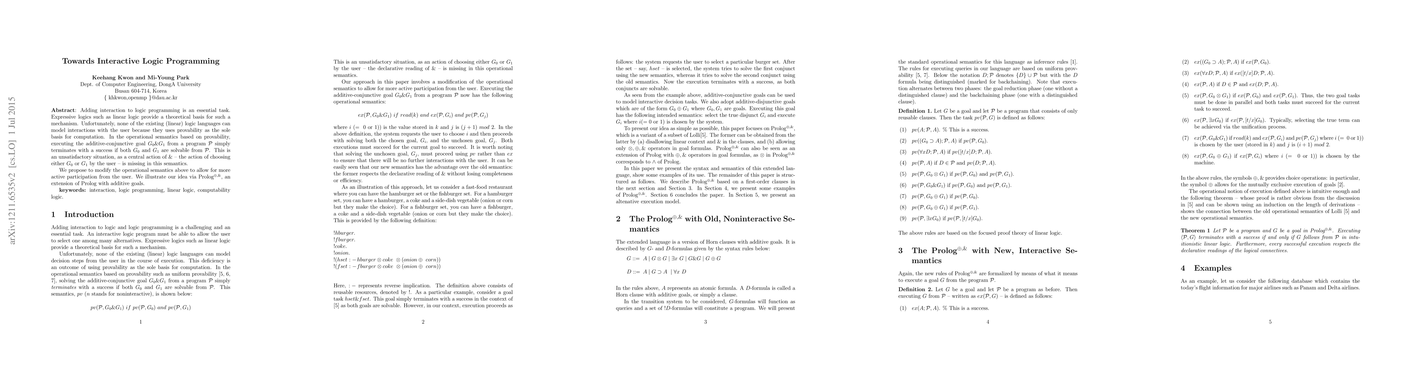 Researchers aim to improve linear logic programming by allowing users to actively participate in the computation process through a modified operational semantics. This could lead to more interactive and effective problem-solving with muProlog, an extension of Prolog.