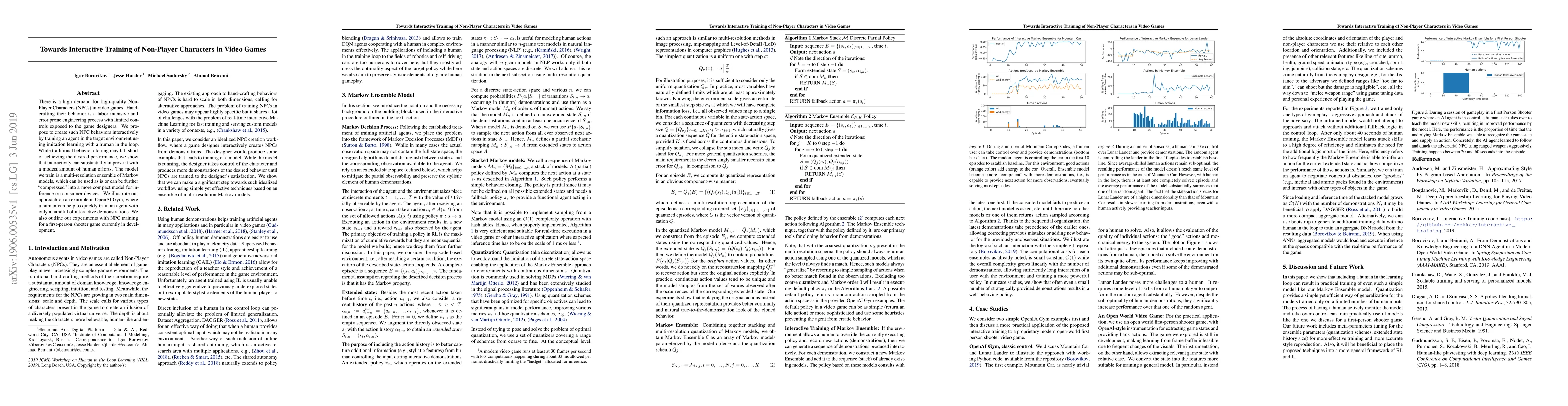 Researchers propose an approach to create interactive training of Non-Player Characters in video games using imitation learning with a human in the loop, improving behavior cloning performance with minimal human effort.