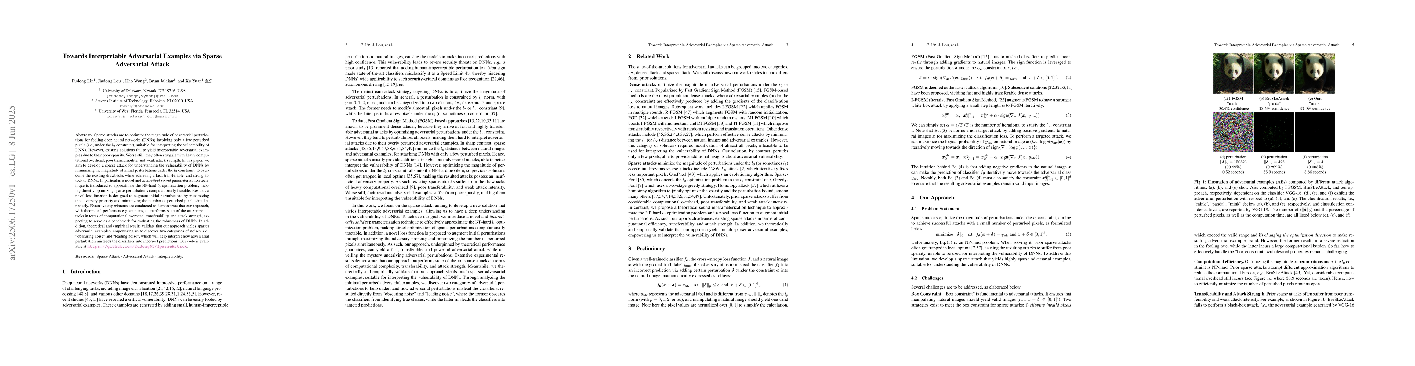 This research introduces a novel sparse attack method to create interpretable adversarial examples for deep neural networks. It overcomes previous limitations of sparse attacks by efficiently approximating the NP-hard l0 optimization problem and designing a new loss function. The approach achieves faster, more transferable, and stronger attacks with theoretical guarantees, yielding sparser examples that reveal 'obscuring noise' and 'leading noise'. The results surpass current sparse attack methods in terms of computational efficiency, transferability, and attack strength, providing a benchmark for DNN robustness evaluation.