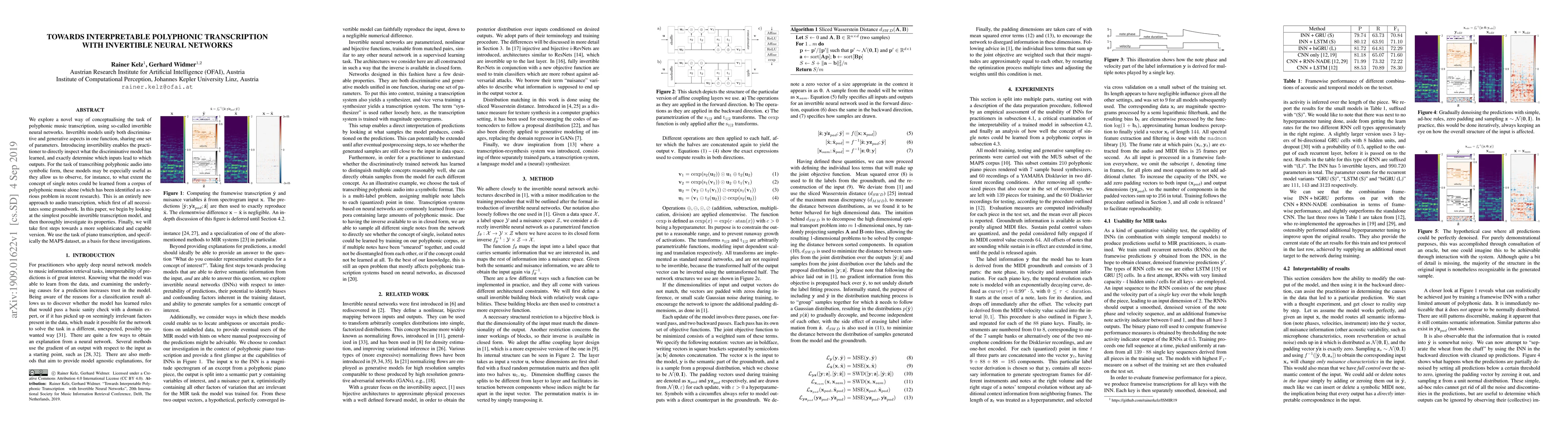 This paper introduces invertible neural networks for interpretable polyphonic music transcription, aiming to unify discriminative and generative aspects. The authors explore a simple model to investigate its properties and potential for revealing insights into the transcription of polyphonic audio, specifically addressing the challenge of identifying single notes in polyphonic music.