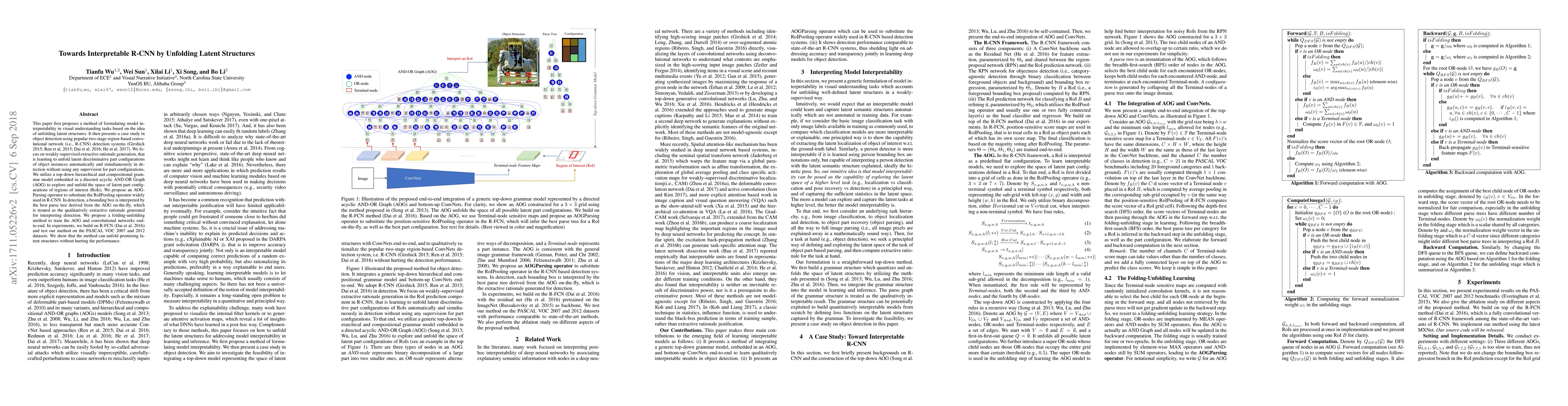 This paper first proposes a method of formulating model interpretability in visual understanding tasks based on the idea of unfolding latent structures. It then presents a case study in object detection using popular two-stage region-based convolutional network (i.e., R-CNN) detection systems. We focus on weakly-supervised extractive rationale generation, that is learning to unfold latent discriminative part configurations of object instances automatically and simultaneously in detection without using any supervision for part configurations. We utilize a top-down hierarchical and compositional grammar model embedded in a directed acyclic AND-OR Graph (AOG) to explore and unfold the space of latent part configurations of regions of interest (RoIs). We propose an AOGParsing operator to substitute the RoIPooling operator widely used in R-CNN. In detection, a bounding box is interpreted by the best parse tree derived from the AOG on-the-fly, which is treated as the qualitatively extractive rationale generated for interpreting detection. We propose a folding-unfolding method to train the AOG and convolutional networks end-to-end. In experiments, we build on R-FCN and test our method on the PASCAL VOC 2007 and 2012 datasets. We show that the method can unfold promising latent structures without hurting the performance.