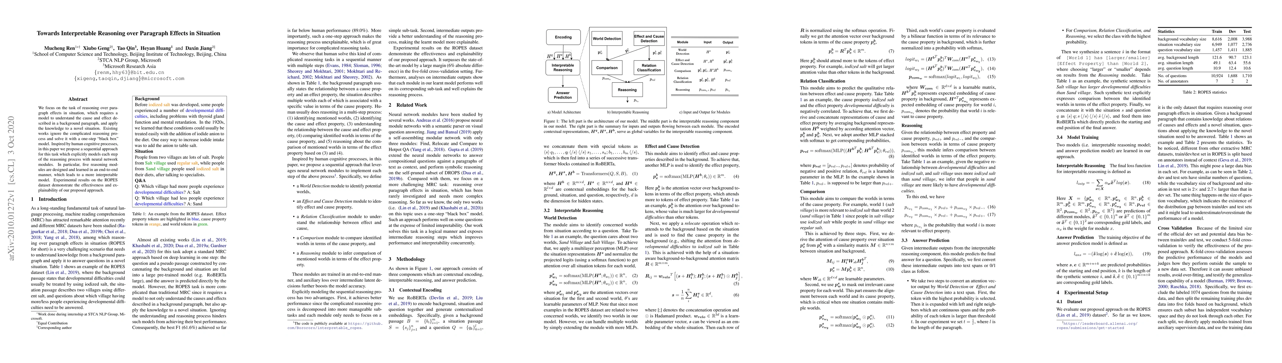 This paper proposes a sequential neural network approach to reason over paragraph effects in a situation, explicitly modeling each reasoning step for improved interpretability. Experimental results on the ROPES dataset show the effectiveness of the proposed five-module model.