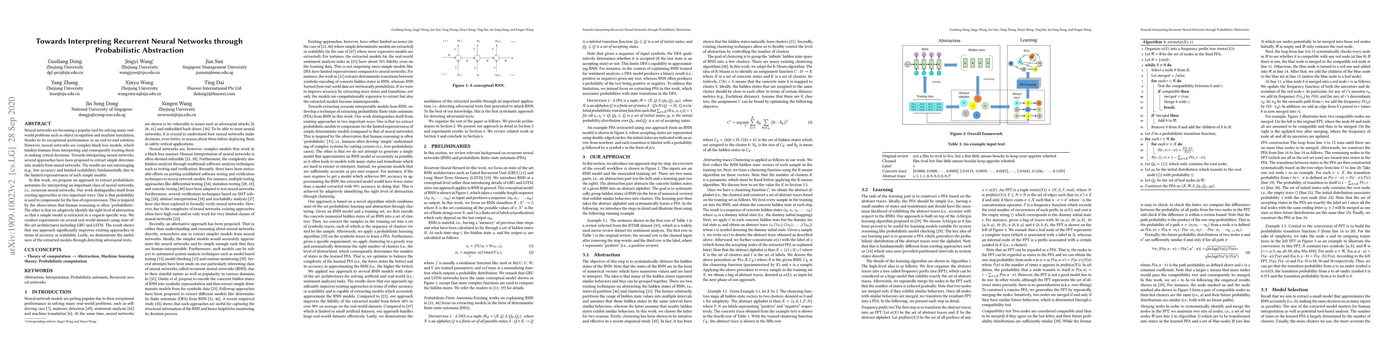 The paper proposes an approach to extract probabilistic automata (PFA) for interpreting recurrent neural networks (RNNs) using probabilistic abstraction. It adapts the right level of abstraction for request-specific simple models, improving accuracy and scalability over existing methods.