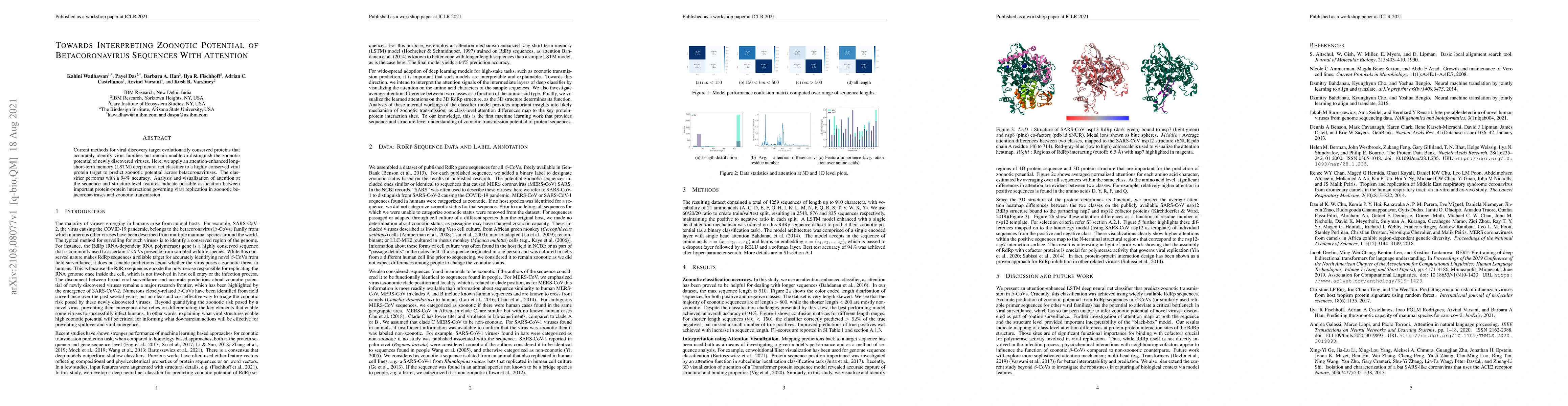 Current methods for viral discovery target evolutionarily conserved proteins that accurately identify virus families but remain unable to distinguish the zoonotic potential of newly discovered viruses. Here, we apply an attention-enhanced long-short-term memory (LSTM) deep neural net classifier to a highly conserved viral protein target to predict zoonotic potential across betacoronaviruses. The classifier performs with a 94% accuracy. Analysis and visualization of attention at the sequence and structure-level features indicate possible association between important protein-protein interactions governing viral replication in zoonotic betacoronaviruses and zoonotic transmission.