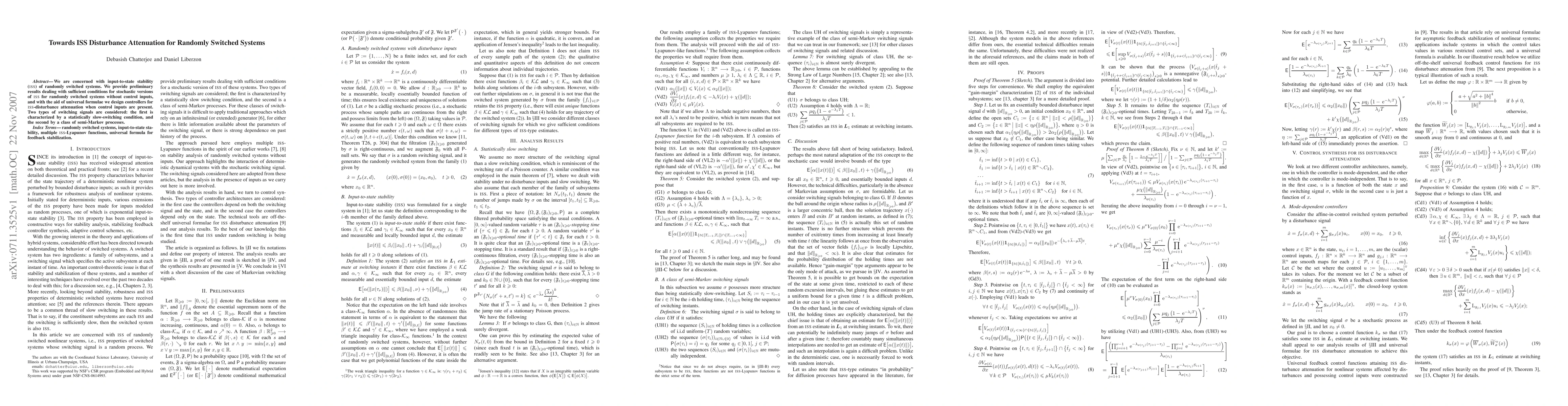 The paper presents novel sufficient conditions for stochastic ISS of randomly switched systems and designs controllers for ISS-disturbance attenuation, extending existing ISS theory to stochastic systems with switching behaviors.