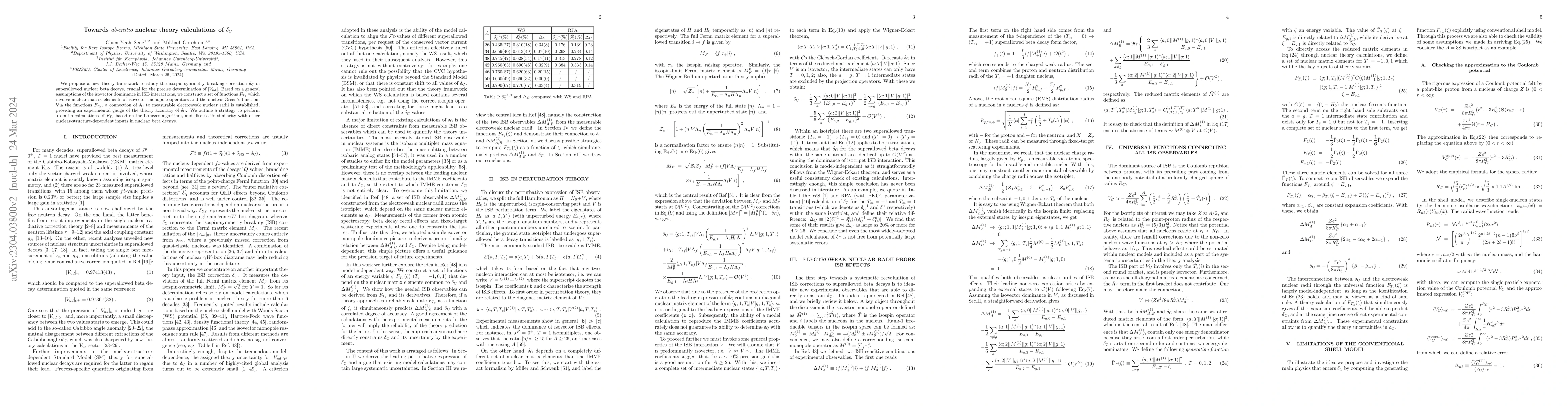 This paper introduces a new theoretical framework for studying isospin-symmetry breaking correction $\delta_\text{C}$ in superallowed nuclear beta decays, essential for determining $|V_{ud}|$. It constructs functions $F_{T_z}$ based on nuclear matrix elements and Green's functions, linking $\delta_\text{C}$ to measurable nuclear radii, and outlines an ab-initio calculation strategy using the Lanczos algorithm.