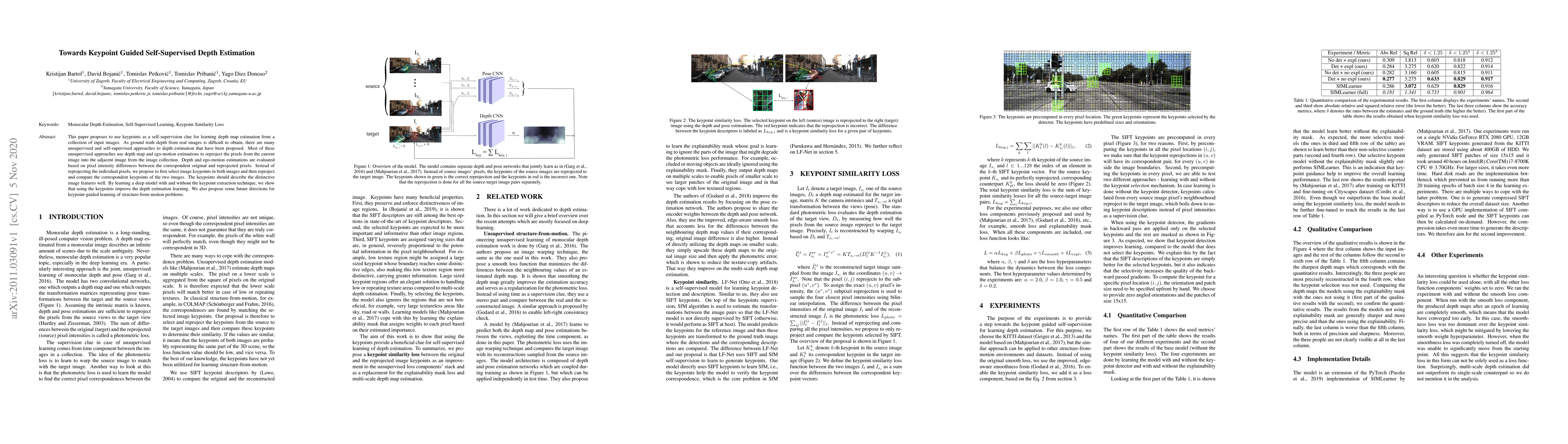 This paper introduces a self-supervised depth estimation method using keypoints as guidance, showing improved performance over traditional pixel-based approaches. Keypoints are extracted from images and used to guide the learning process, leading to better depth map estimations.