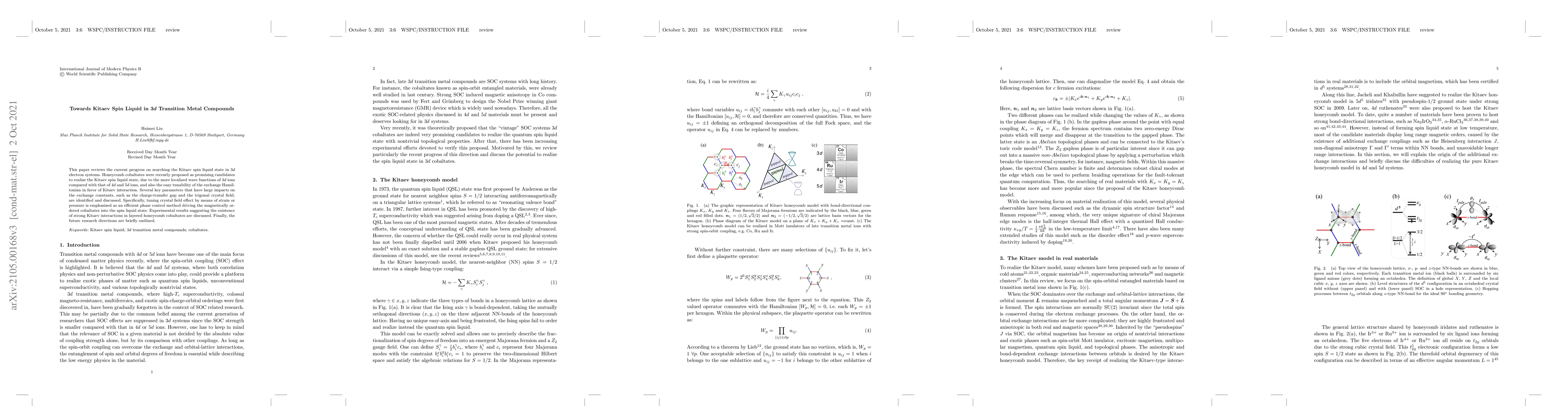 This paper reviews progress in identifying Kitaev spin liquid states in 3d transition metal compounds, particularly focusing on honeycomb cobaltates. It highlights the role of crystal field effects and strain/pressure in tuning these materials, and discusses experimental evidence supporting strong Kitaev interactions in these systems.
