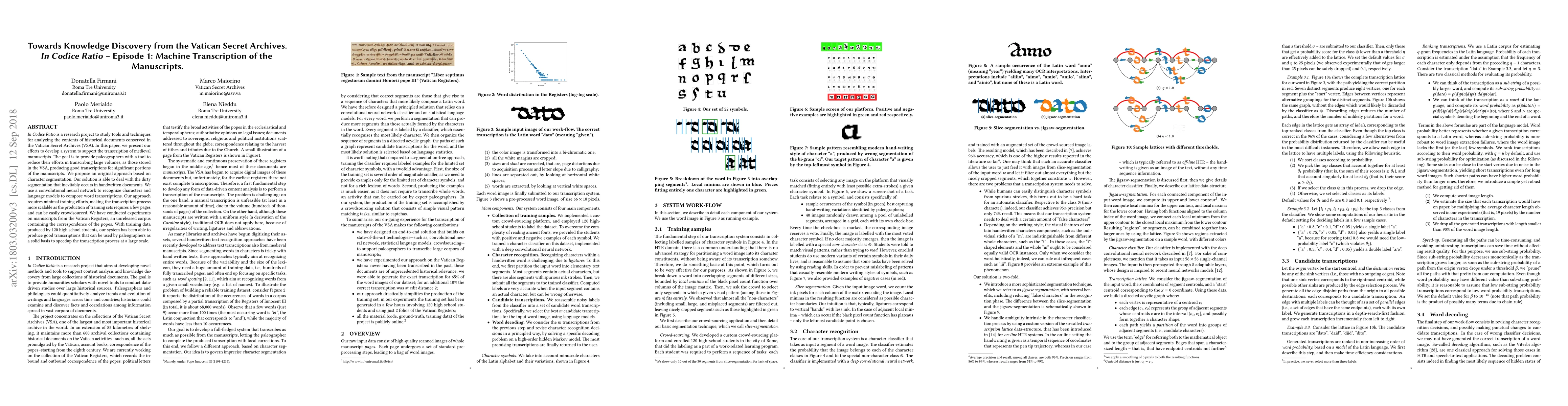This paper introduces a system for machine transcription of medieval manuscripts from the Vatican Secret Archives, utilizing character segmentation and convolutional neural networks to recognize characters and language models for word transcriptions. The approach requires minimal training, enabling scalable transcription with crowdsourced data, demonstrated through successful experiments on unreleased Vatican Registers.