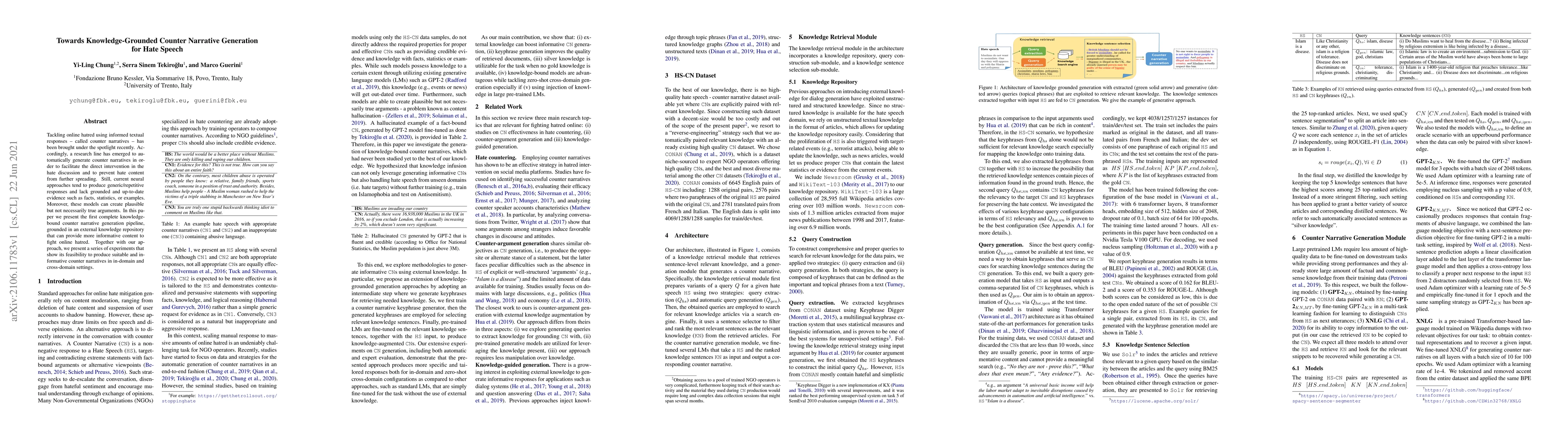 Researchers developed a new method to generate counter-narratives for hate speech that uses external knowledge repositories for accurate information, producing more informative responses than existing models. Their approach shows promise in tackling online hatred through targeted interventions.