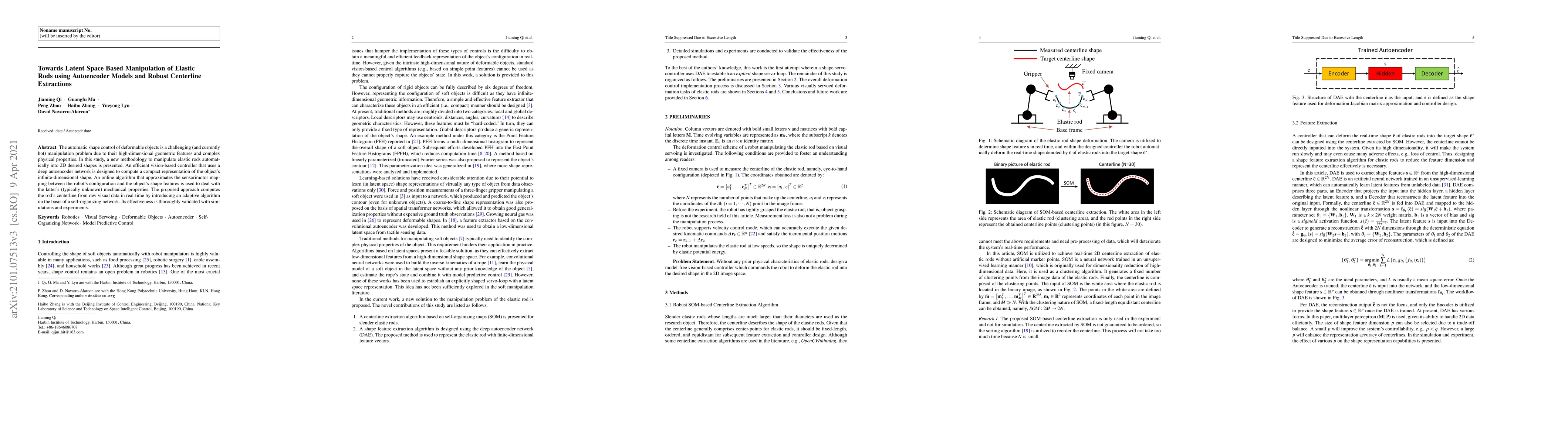 This paper presents a novel methodology for automatically manipulating elastic rods into desired 2D shapes using a deep autoencoder network for compact representation and a robust centerline extraction algorithm. The approach is validated through simulations and experiments.