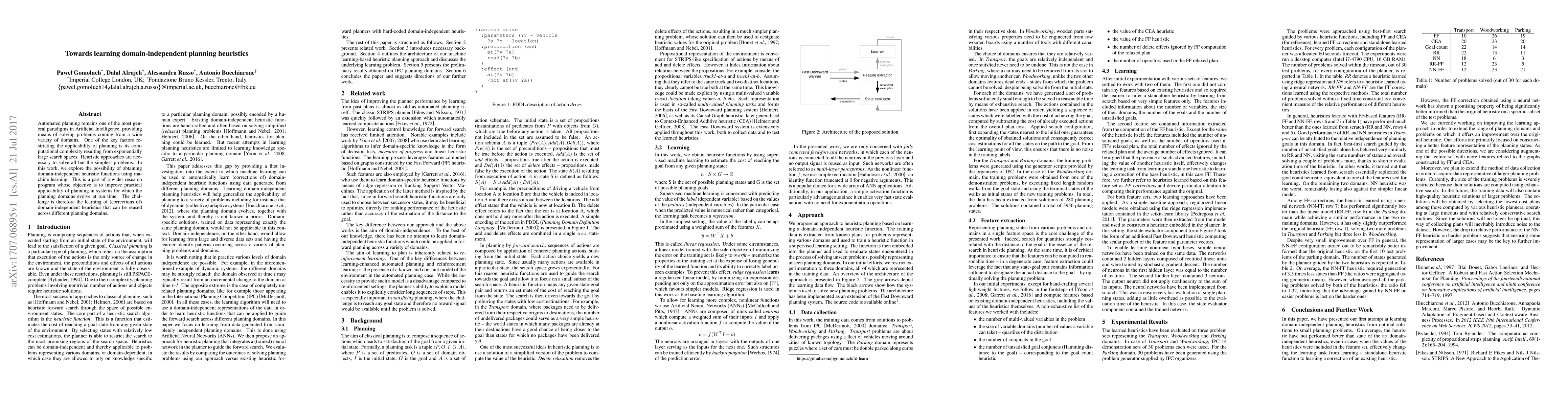 Automated planning remains one of the most general paradigms in Artificial Intelligence, providing means of solving problems coming from a wide variety of domains. One of the key factors restricting the applicability of planning is its computational complexity resulting from exponentially large search spaces. Heuristic approaches are necessary to solve all but the simplest problems. In this work, we explore the possibility of obtaining domain-independent heuristic functions using machine learning. This is a part of a wider research program whose objective is to improve practical applicability of planning in systems for which the planning domains evolve at run time. The challenge is therefore the learning of (corrections of) domain-independent heuristics that can be reused across different planning domains.