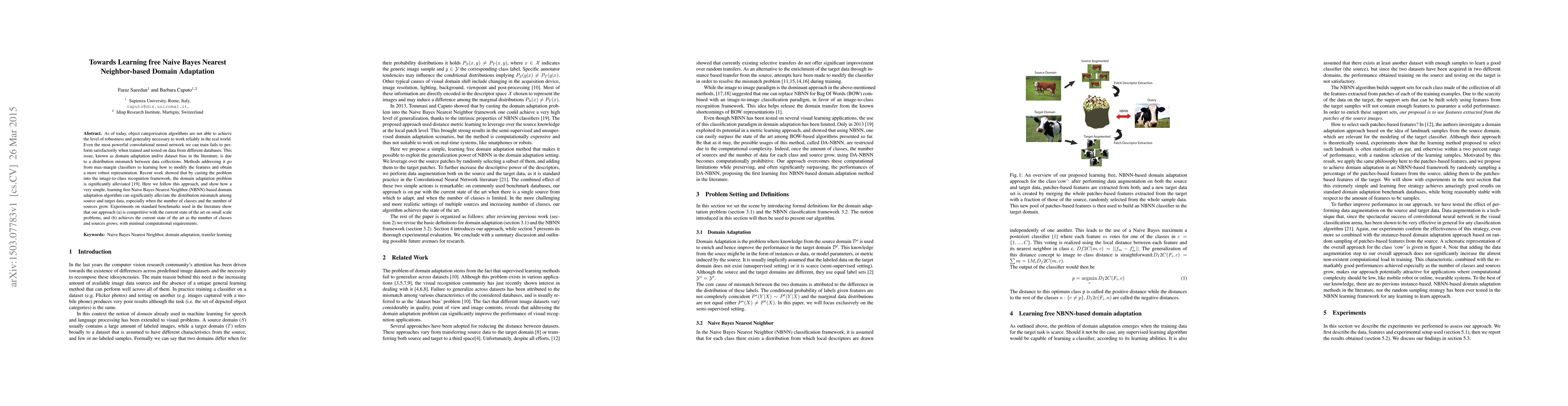 This paper proposes a simple, learning-free Naive Bayes Nearest Neighbor algorithm for domain adaptation, achieving competitive results on small-scale problems and surpassing state-of-the-art performance as the number of classes and sources grows.