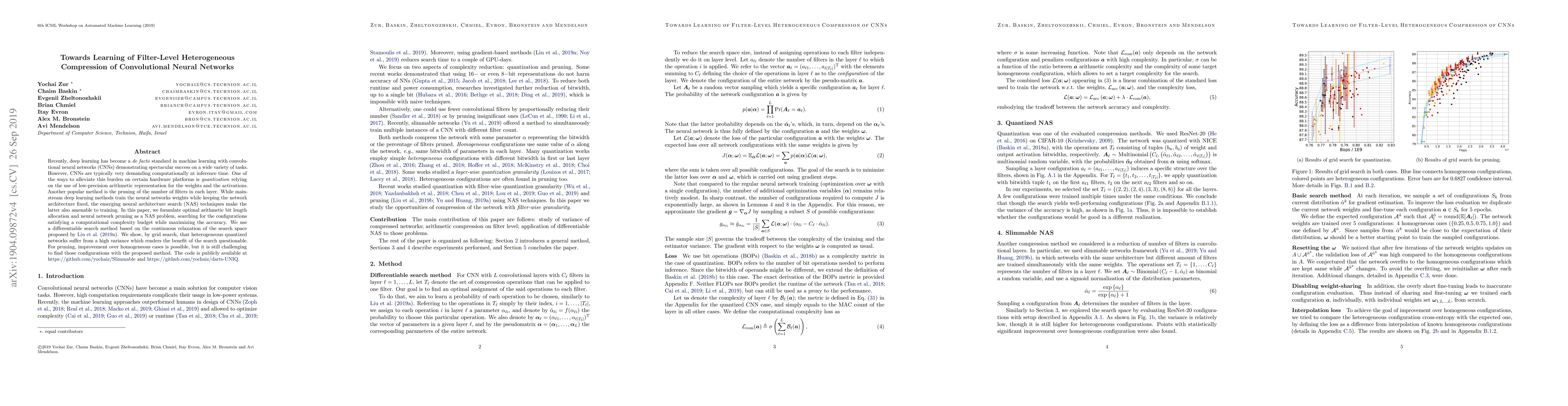 This research explores combining quantization and pruning for CNN compression using neural architecture search (NAS). The study finds that while heterogeneous quantization has high variance, pruning can improve performance, though finding optimal configurations remains challenging. The methodology uses a differentiable NAS approach based on Liu et al.'s continuous relaxation technique. Code is available at specified GitHub repositories.
