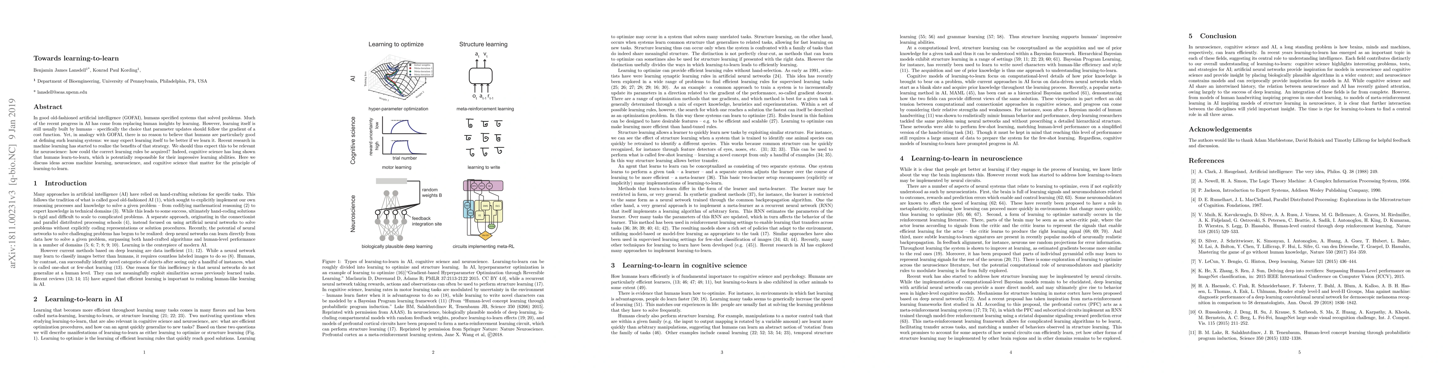 This paper explores how AI systems can learn to learn, building on recent advances in machine learning. It suggests that humans may not be the best at defining learning rules and proposes ways for the correct learning rules to be acquired.