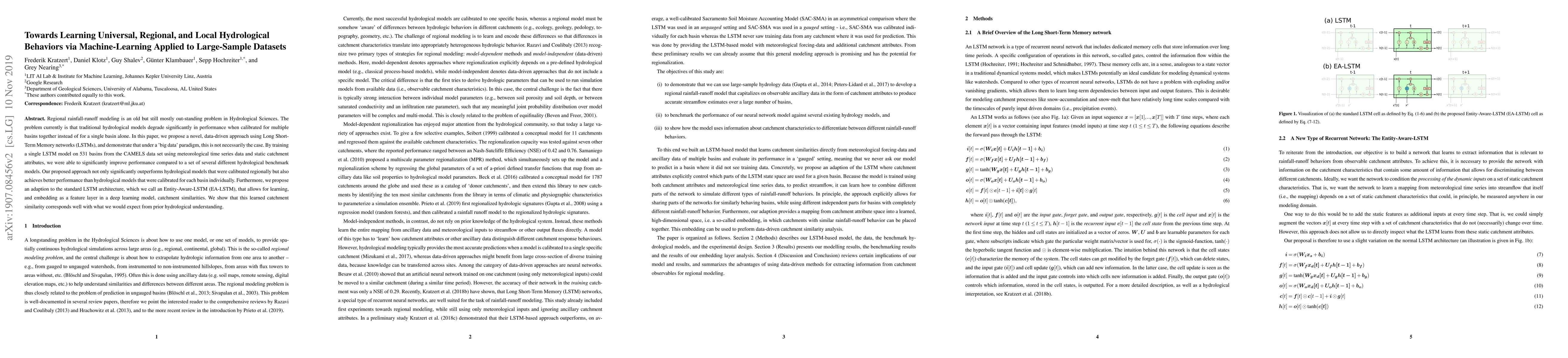 A new machine-learning approach using Long Short-Term Memory networks improves hydrological modeling performance when trained on large datasets from multiple basins. This method achieves better results than traditional models calibrated for individual basins or regions.