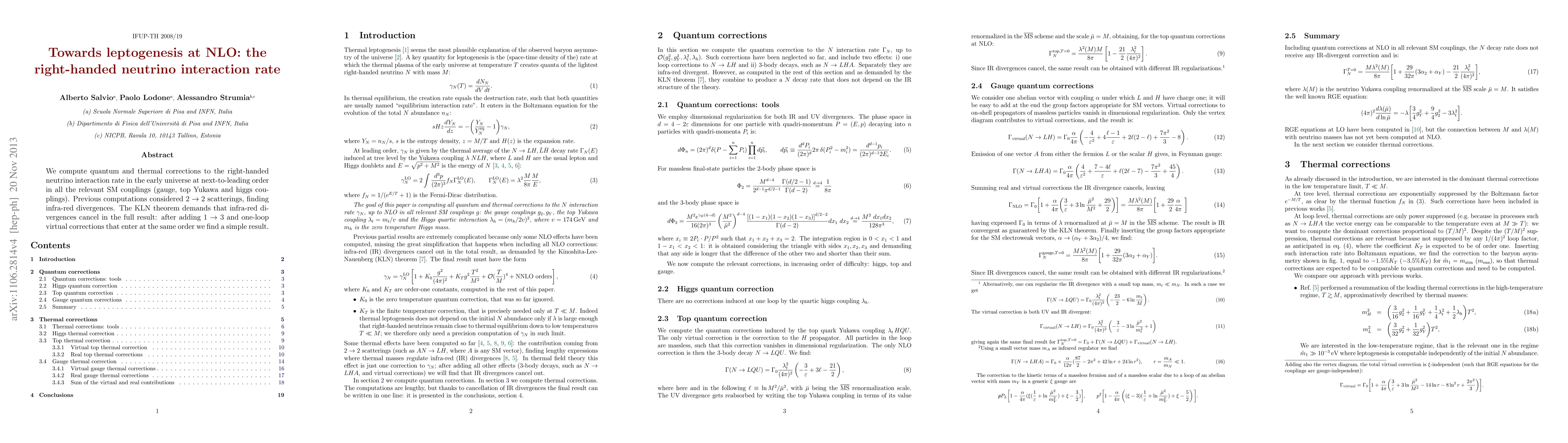 We compute quantum and thermal corrections to the right-handed neutrino interaction rate in the early universe at next-to-leading order in all the relevant SM couplings (gauge, top Yukawa and higgs couplings). Previous computations considered 2 -> 2 scatterings, finding infra-red divergences. The KLN theorem demands that infra-red divergences cancel in the full result: after adding 1 -> 3 and one-loop virtual corrections that enter at the same order we find a simple result.