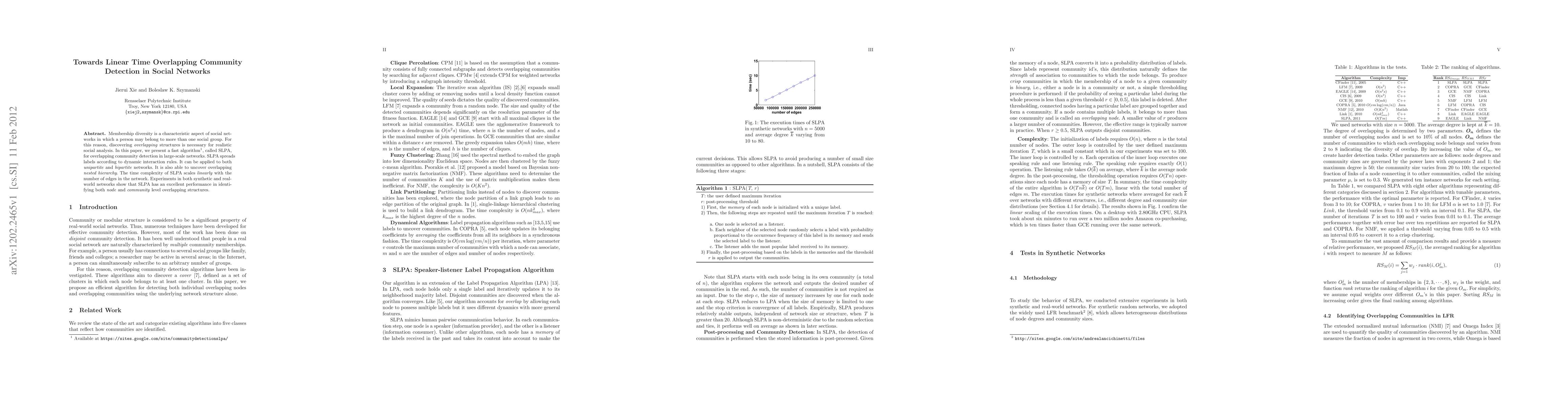 This paper introduces SLPA, a fast linear time algorithm for detecting overlapping communities in large-scale social networks, capable of uncovering nested hierarchies and applicable to both unipartite and bipartite networks. Experiments demonstrate SLPA's superior performance in identifying overlapping structures in both synthetic and real-world networks.
