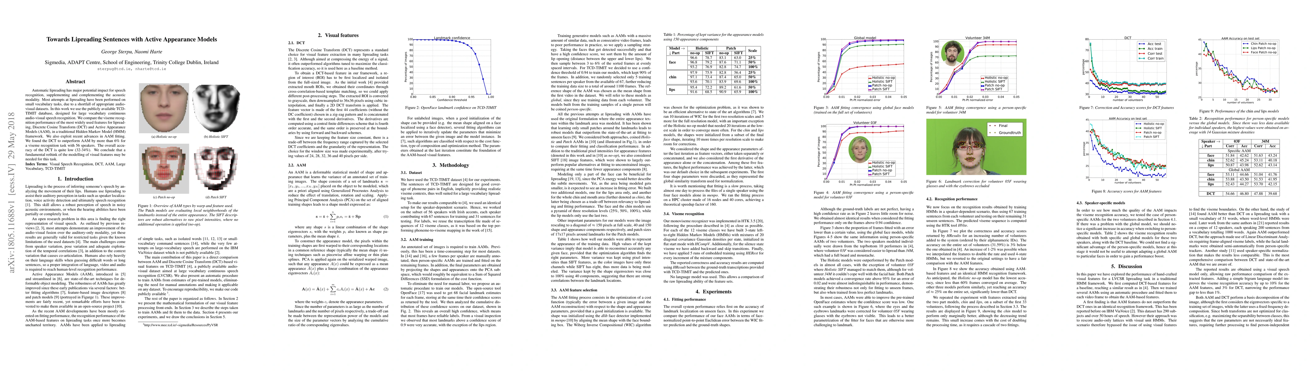 This paper explores the use of Active Appearance Models (AAM) for automatic lipreading in large vocabulary tasks, comparing it to Discrete Cosine Transform (DCT). Despite AAM's potential, DCT outperformed AAM by over 6% in viseme recognition, suggesting a need for new visual feature models.