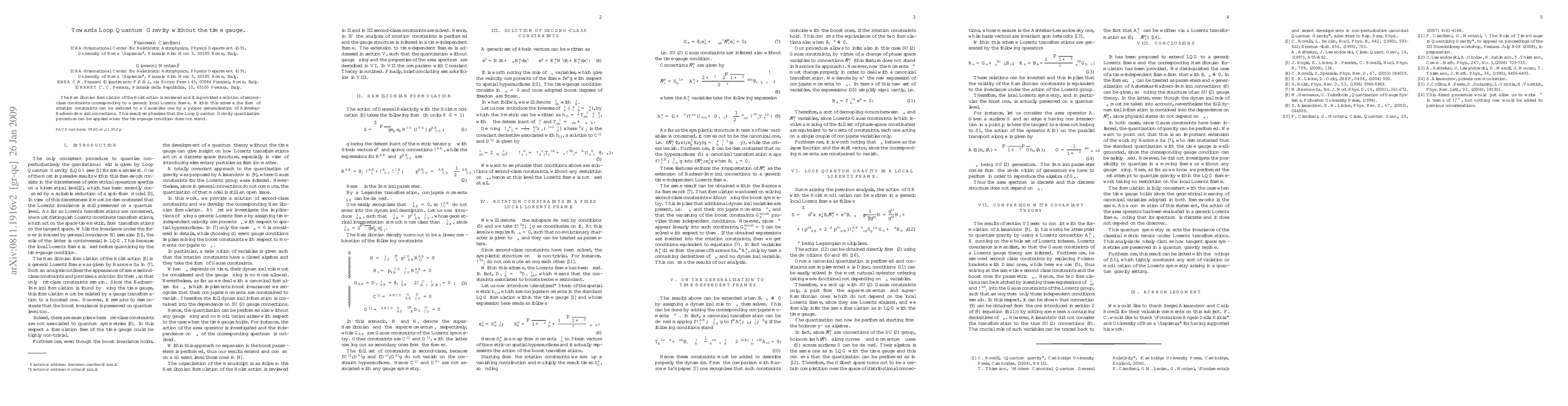 The Hamiltonian formulation of the Holst action is reviewed and it is provided a solution of second-class constraints corresponding to a generic local Lorentz frame. Within this scheme the form of rotation constraints can be reduced to a Gauss-like one by a proper generalization of Ashtekar-Barbero-Immirzi connections. This result emphasizes that the Loop Quantum Gravity quantization procedure can be applied when the time-gauge condition does not stand.