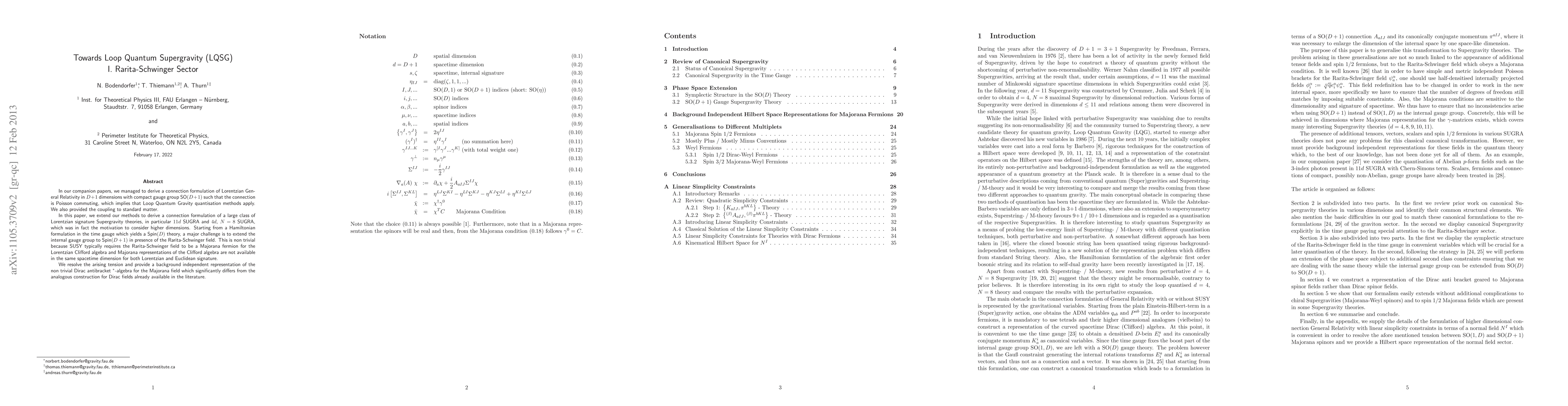 In our companion papers, we managed to derive a connection formulation of Lorentzian General Relativity in D+1 dimensions with compact gauge group SO(D+1) such that the connection is Poisson commuting, which implies that Loop Quantum Gravity quantisation methods apply. We also provided the coupling to standard matter. In this paper, we extend our methods to derive a connection formulation of a large class of Lorentzian signature Supergravity theories, in particular 11d SUGRA and 4d, N = 8 SUGRA, which was in fact the motivation to consider higher dimensions. Starting from a Hamiltonian formulation in the time gauge which yields a Spin(D) theory, a major challenge is to extend the internal gauge group to Spin(D+1) in presence of the Rarita-Schwinger field. This is non trivial because SUSY typically requires the Rarita-Schwinger field to be a Majorana fermion for the Lorentzian Clifford algebra and Majorana representations of the Clifford algebra are not available in the same spacetime dimension for both Lorentzian and Euclidean signature. We resolve the arising tension and provide a background independent representation of the non trivial Dirac antibracket *-algebra for the Majorana field which significantly differs from the analogous construction for Dirac fields already available in the literature.