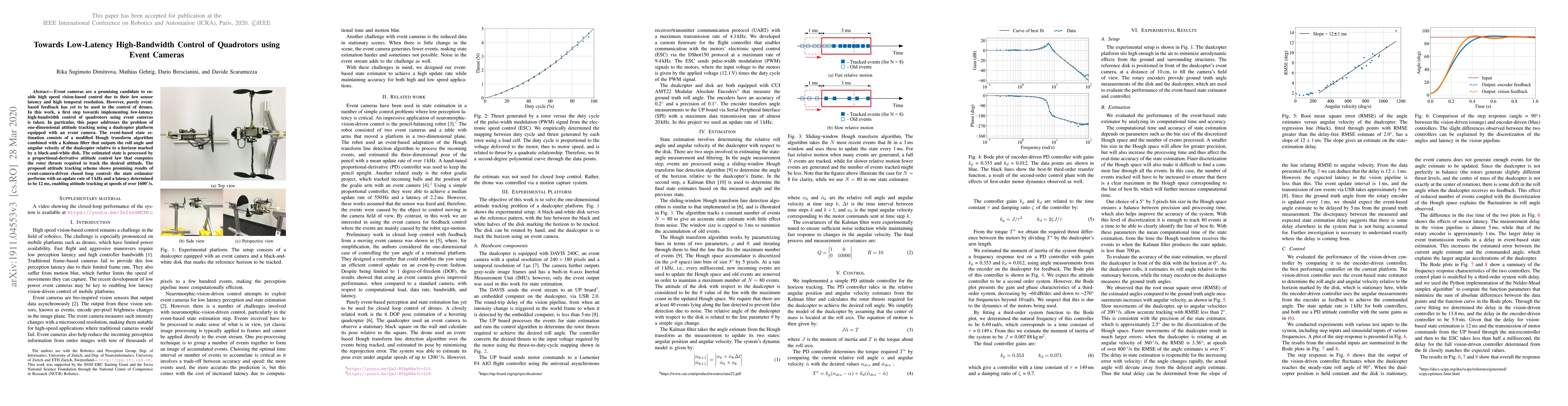 This paper explores low-latency high-bandwidth control of quadrotors using event cameras, demonstrating a modified Hough transform and Kalman filter for state estimation. The proposed attitude tracking scheme achieves an update rate of 1 kHz and 12 ms latency, enabling effective control at high angular speeds.